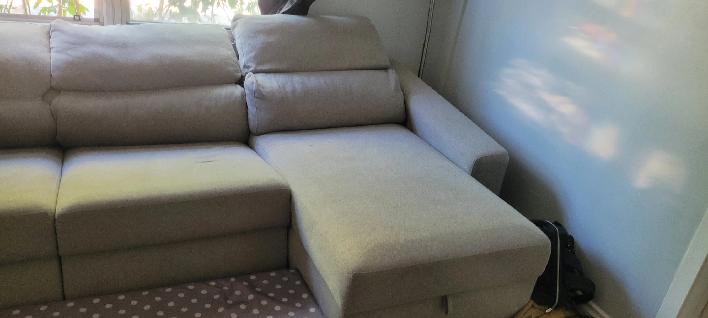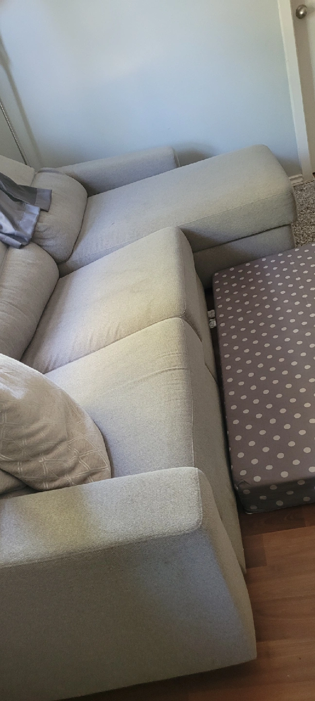 Selling a beige sectional sofa. It's in great condition and would be a cozy addition to any living room! Perfect for lounging and relaxing after a long day. If you're interested, please reach out!