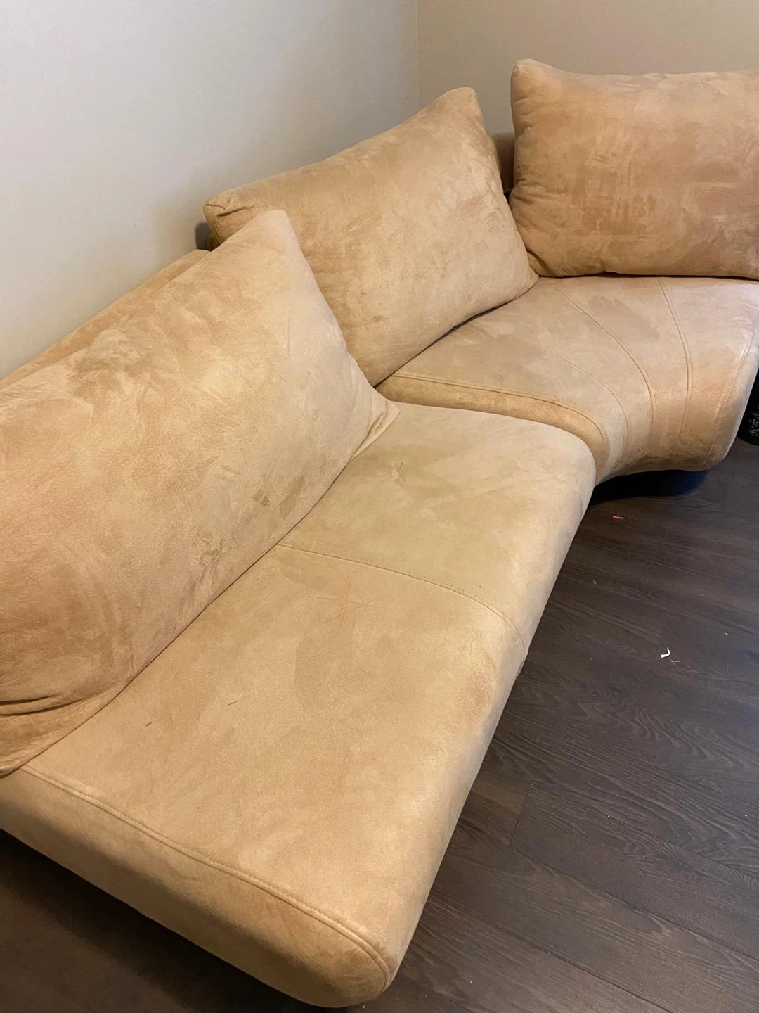 0Selling a comfy beige sectional sofa! It's perfect for a living room or entertainment area. The cushions are nice and soft, and it's in good condition. It would be a great addition to any home!