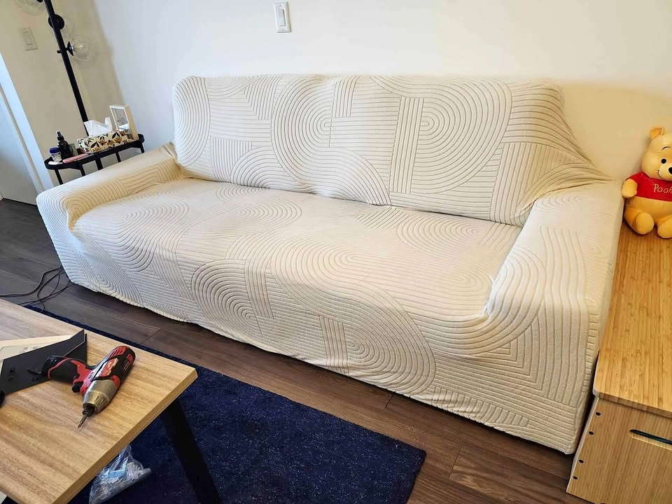 18Brand new sofa cover, it was only opened to try it on. It is just a tad too small for my sofa. Comes with cushion cover as well. Super soft, very stretchy. It fits sofas ranging from 190-230 cm. Originally paid $55. From pet and smoke free home. Pick up only at Sunnyside. If the ad is up, its available.