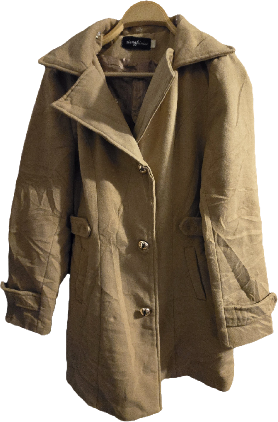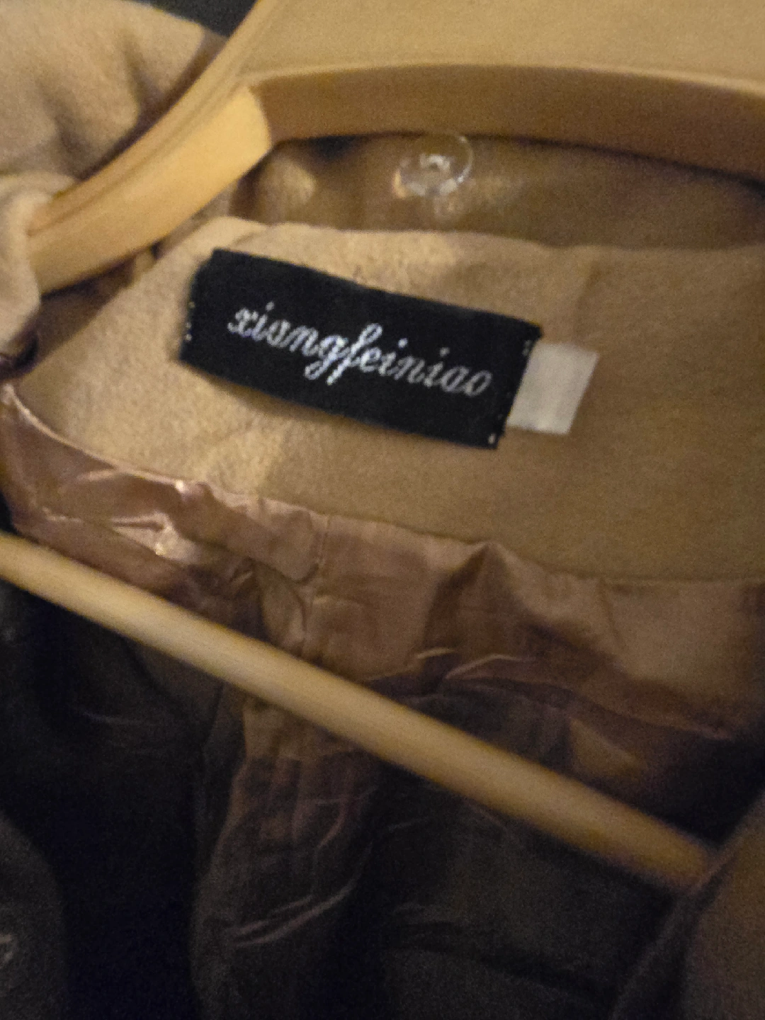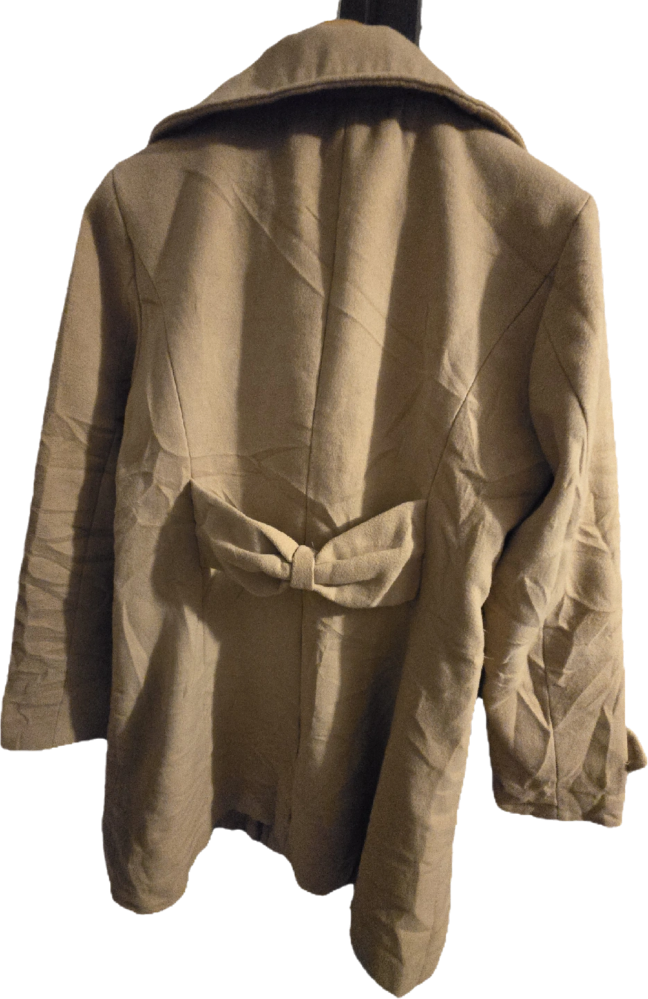 Selling a beige coat from Xiongfeiniao. It's in good condition and has a nice bow detail on the back. Perfect for fall weather!