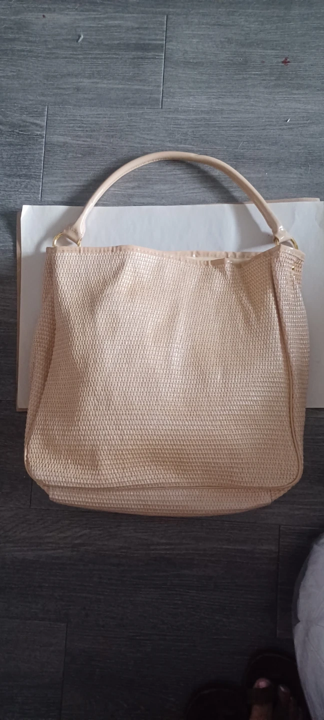 15Selling a beige woven shoulder bag. It's in good condition and perfect for everyday use!