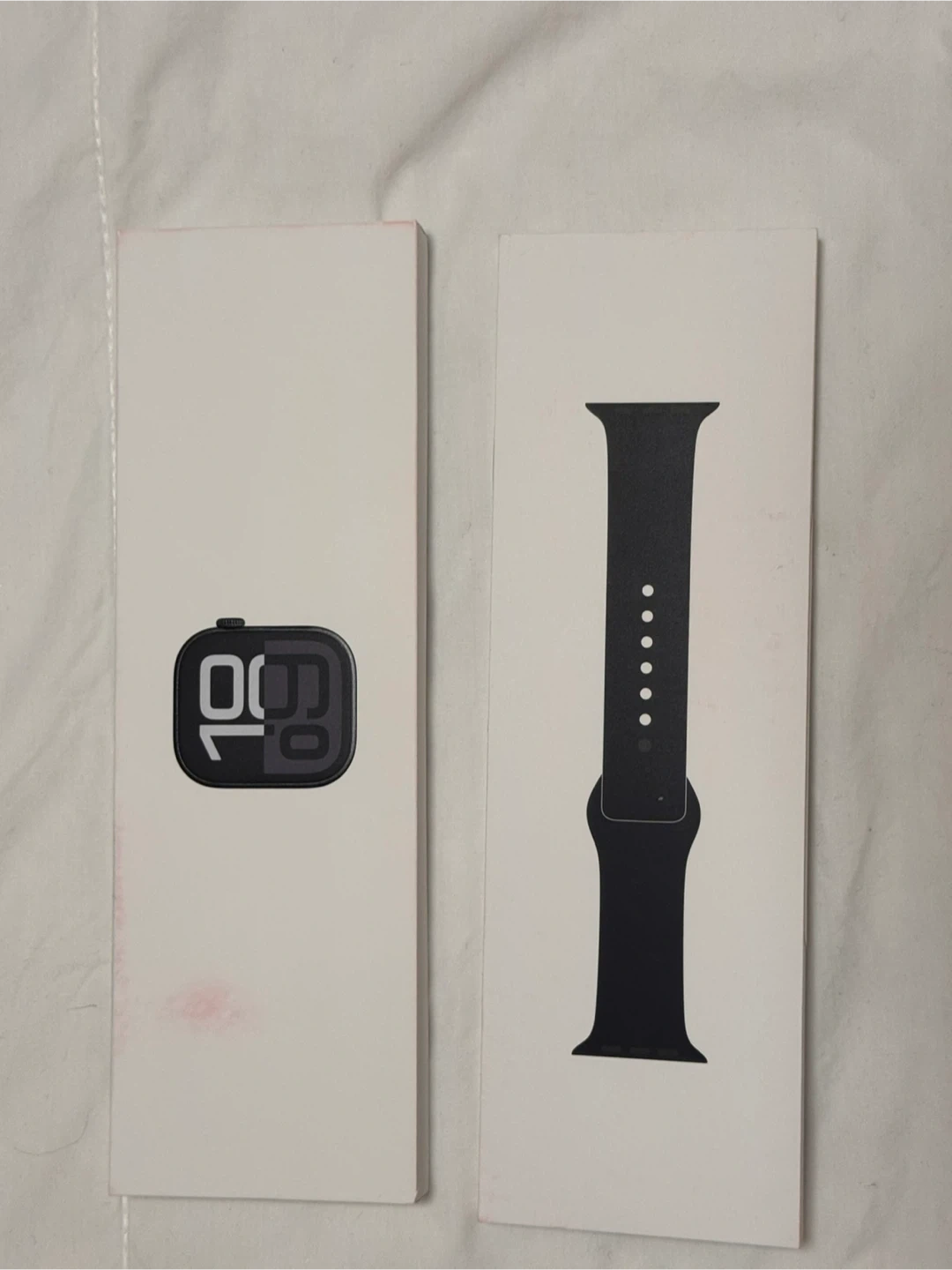 This is an Apple Watch Series 10 - 46mm in black. It comes with its original box and a black sport band. It is gently used, works perfectly, and has no issues. Always well taken care of.