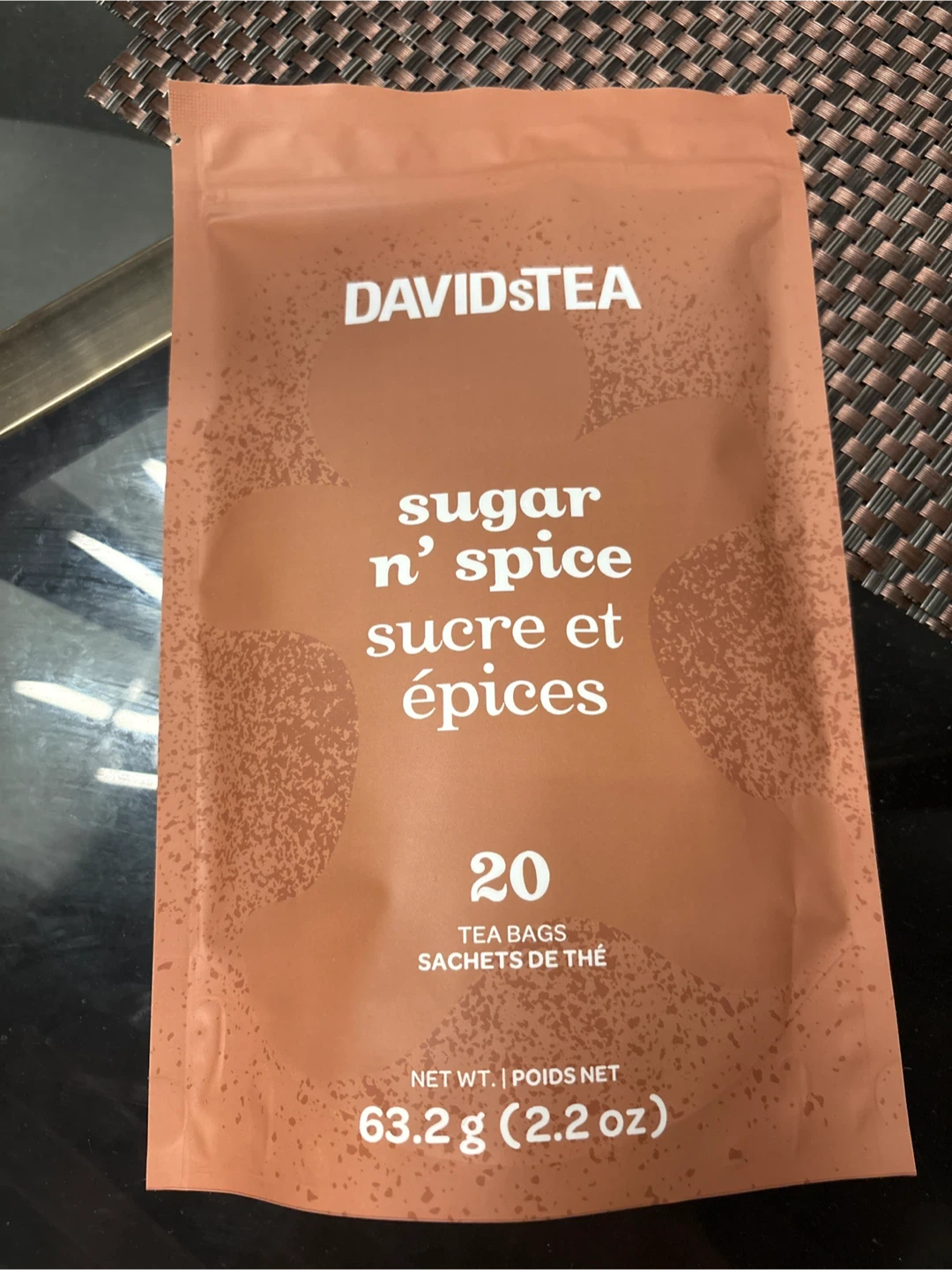 Selling a bag of DAVIDsTEA Sugar n' Spice tea bags! This bag contains 20 tea bags with a net weight of 63.2g (2.2 oz). Perfect for a cozy warm drink! Brand new never opened!!