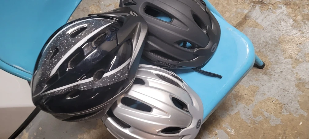 10Selling a couple of Bell bike helmets. One is black with white accents, and the other is grey. Both are in good condition and ready for a new owner!