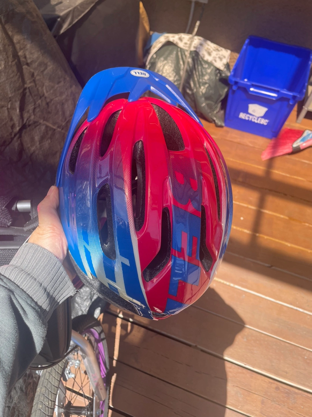 95Used Bell bicycle helmet for child. Red and blue colour scheme. Size 51-57 cm. Good condition.