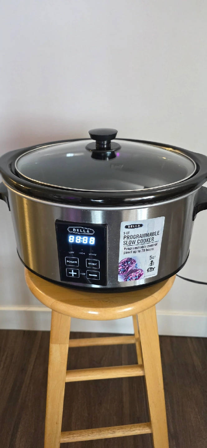 60Selling a Bella 5 QT programmable slow cooker! It has a programmable control panel that can be set for up to 20 hours. Perfect for making soups, stews, and more!