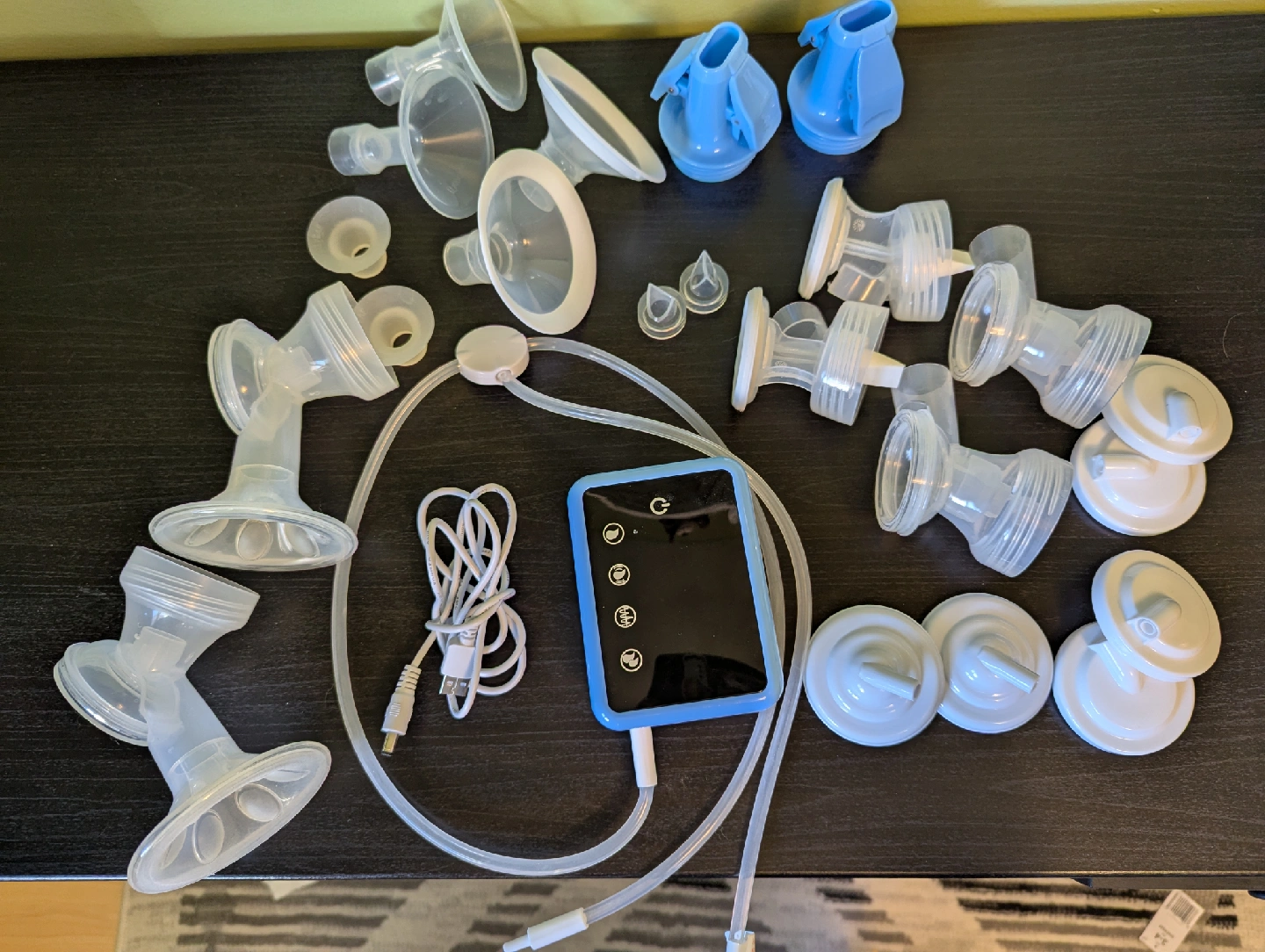 25Bellababy Double Electric Breast Pump. Comes with 3 different flange sizes and 1 flange insert (15, 21 and 23 mm), and a full replacemt set. It's very quiet. 2 years old and gently used.