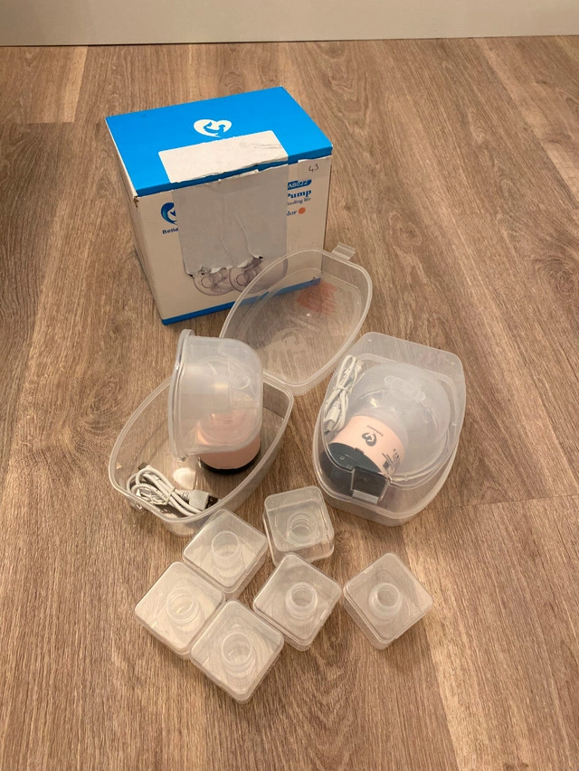 73Multiple Flange Sizes – Includes 24mm + inserts (21mm, 19mm, 17mm) for the perfect fit. 4 Modes & 9 Levels – Adjustable suction strength with LCD display for easy control. Comfortable & Pain-Free – Soft silicone material ensures gentle use. Quiet & Discreet – Low noise motor, suitable for night or office use. Wireless & Portable – Lightweight design, easy to wear anytime. Capacity – Each container holds up to 6 oz. Condition – Open box, brand new. Cash and cashless payments accepted.