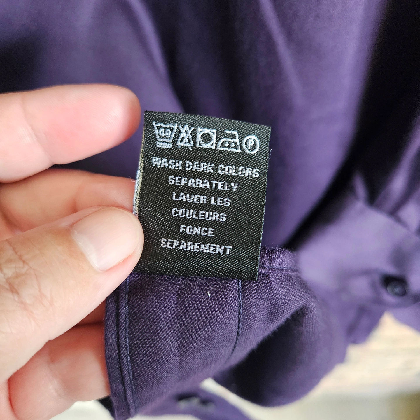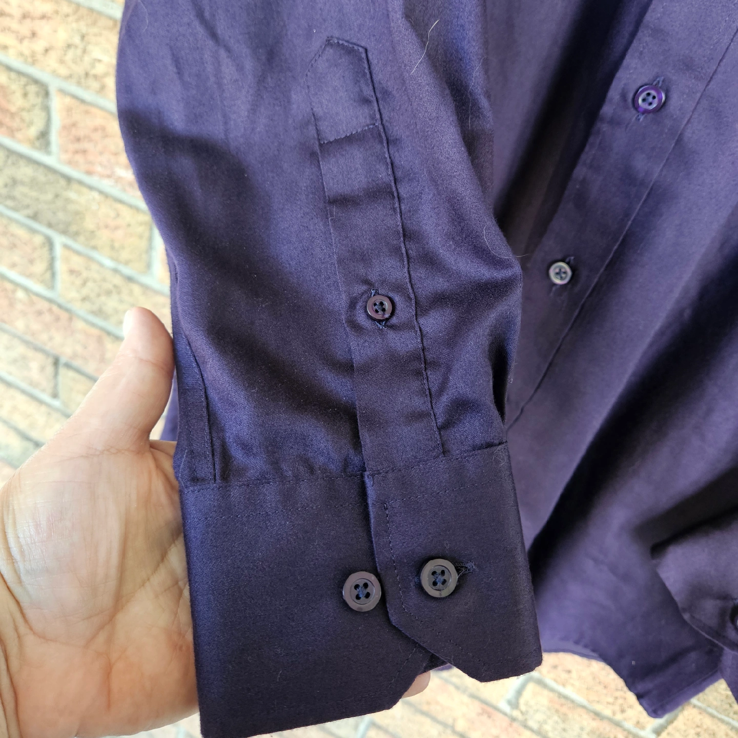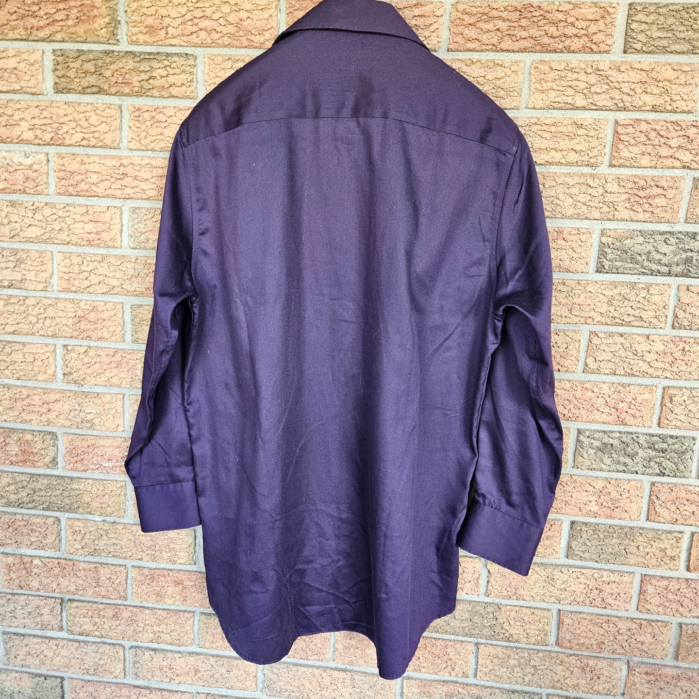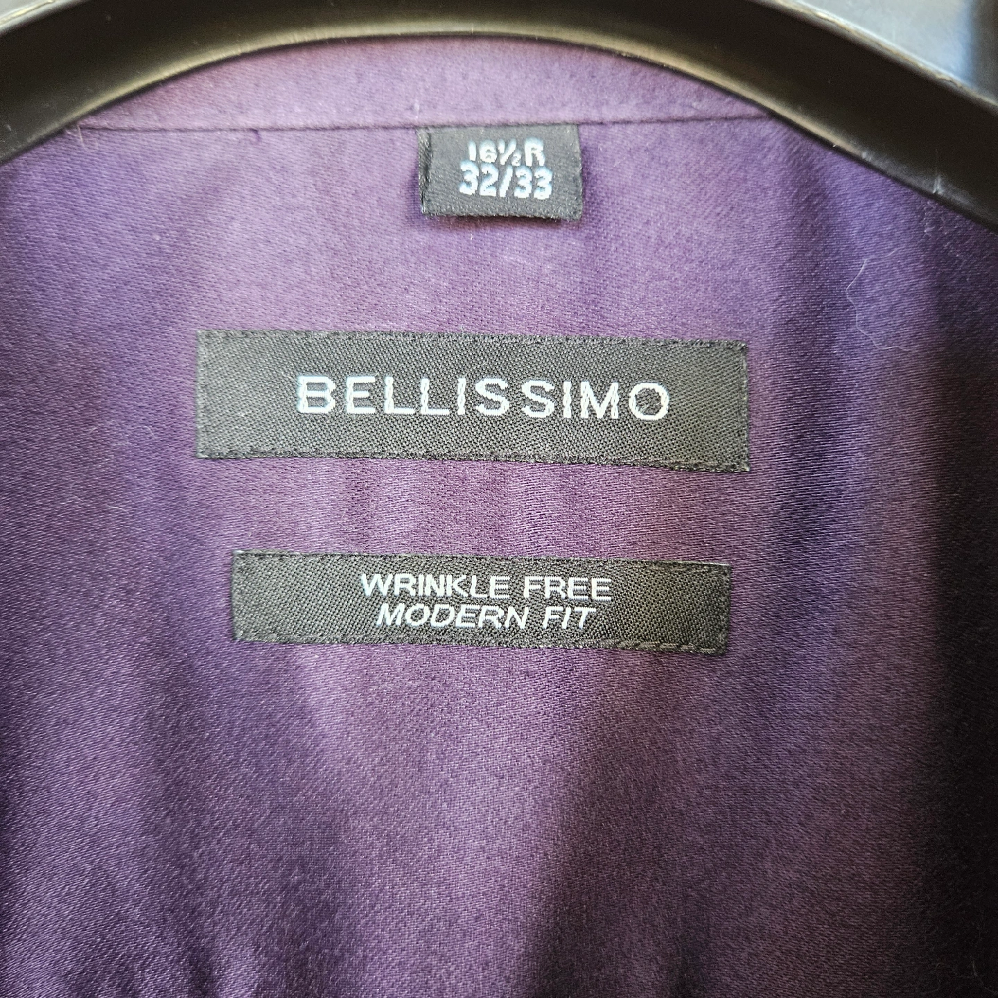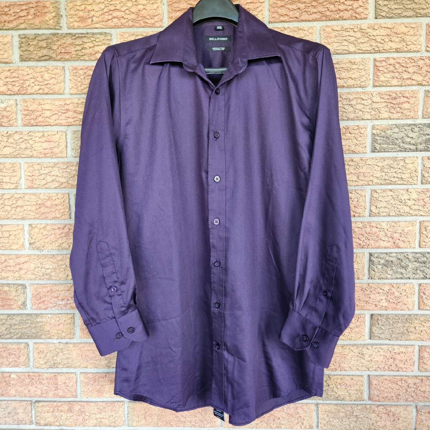 Belissimo purple men's dress shirt long sleeve 16 1/2" R 32/33 Wrinkle Free length 32" pit to pit 23" Sleeve and cuff 23" 55% cotton 45% polyester made in Cambodia