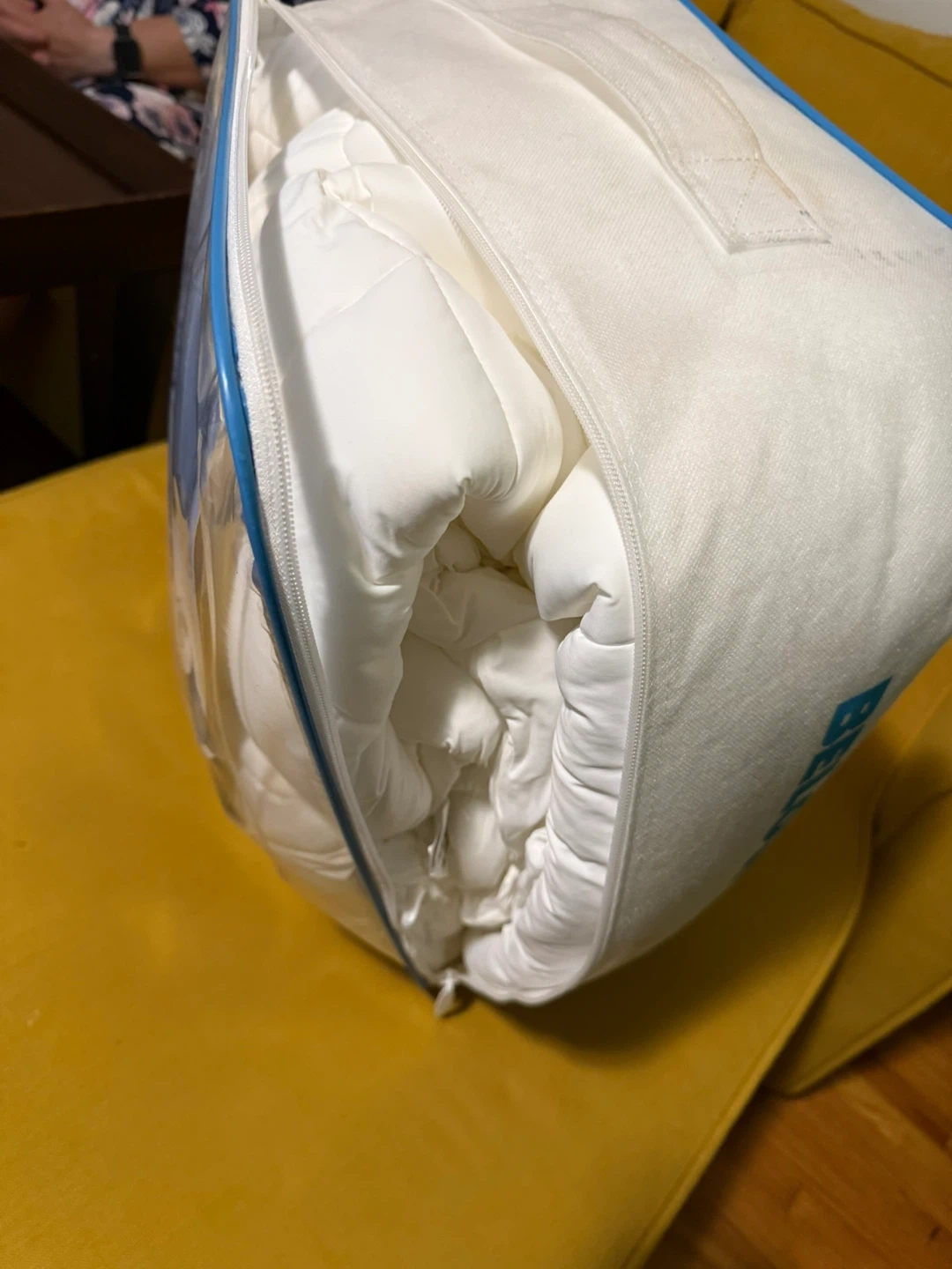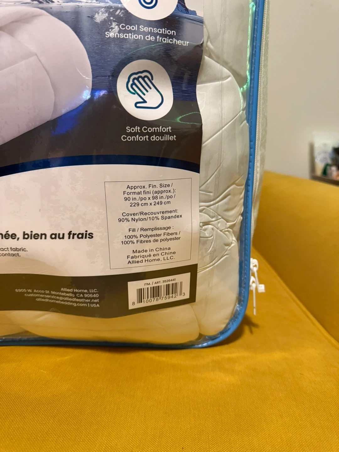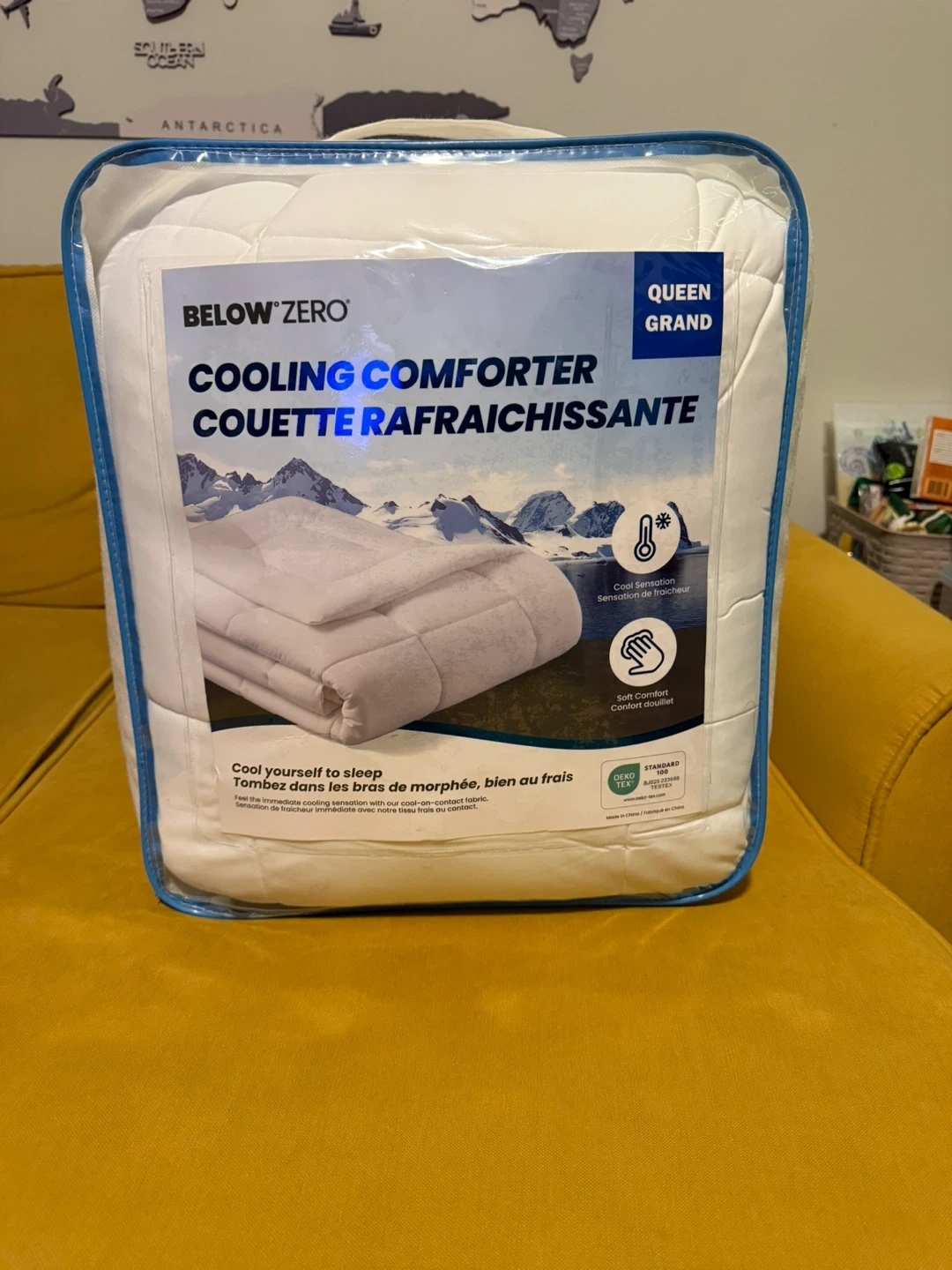 Keep cool all night with this brand new Below Zero Cooling Comforter in Queen size! This comforter features a cooling sensation and soft comfort, perfect for a restful sleep. Additional details: * Size: Queen 90% Nylon 10% Spandex Cover 100% Polyester Fill Perfect Weight for All Season Super Cool to the Touch Temperature Balancing Looking for a dreamy, chill sleep experience? This is it. And yes, if the ad's up, it's up for grabs! Pick up in Lower Mount Royal . Please check out more of my items and get a good deal.