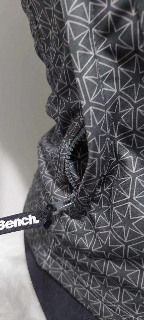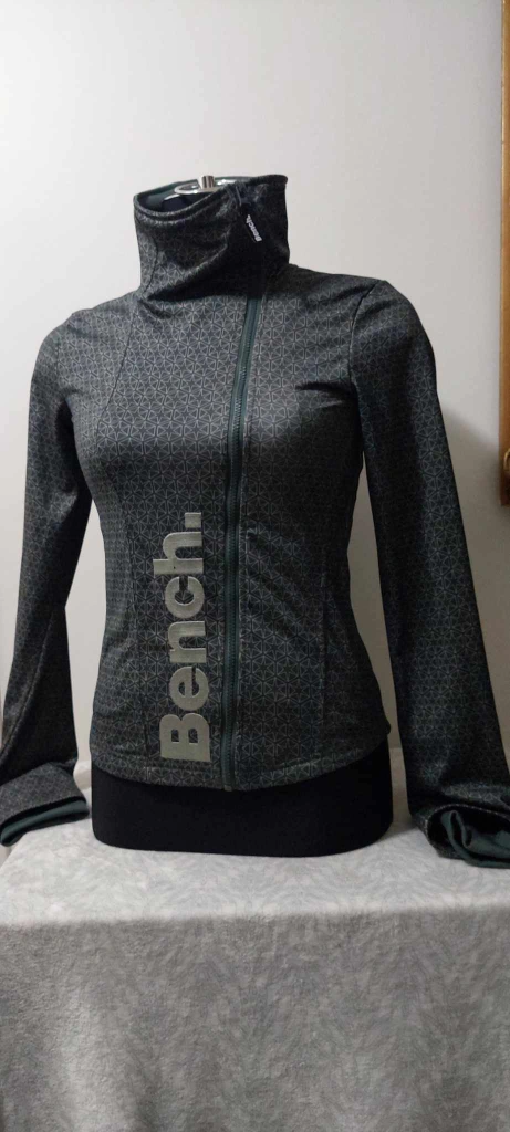 Please take a look at my other listing. Thanks. Stay stylish and warm on your morning or evening walks in this greenish graywindbreaker. There are 2 pockets on both sides with zippers featuring Bench logo. Long sleeves with thumb holes It's in an impeccable condition, gentle used. Can be used for hiking, walking boating, sports, fitness, and while traveling