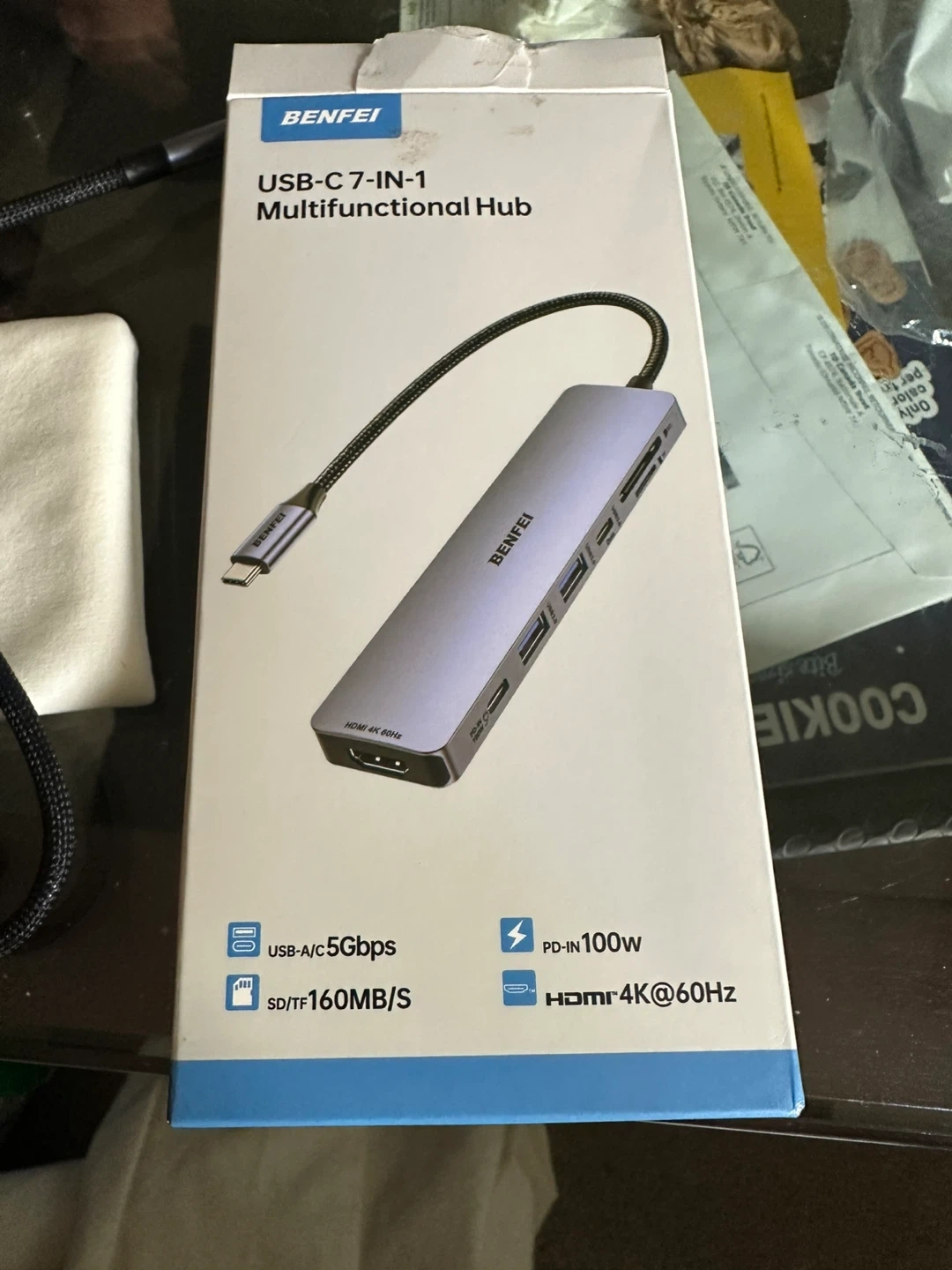 237Selling a brand new BENFEI USB-C 7-IN-1 Multifunctional Hub! It comes with the original box and a carrying pouch. Key features: - USB-A/C: 5Gbps - PD-IN: 100W - SD/TF: 160MB/S - HDMI: 4K@60Hz