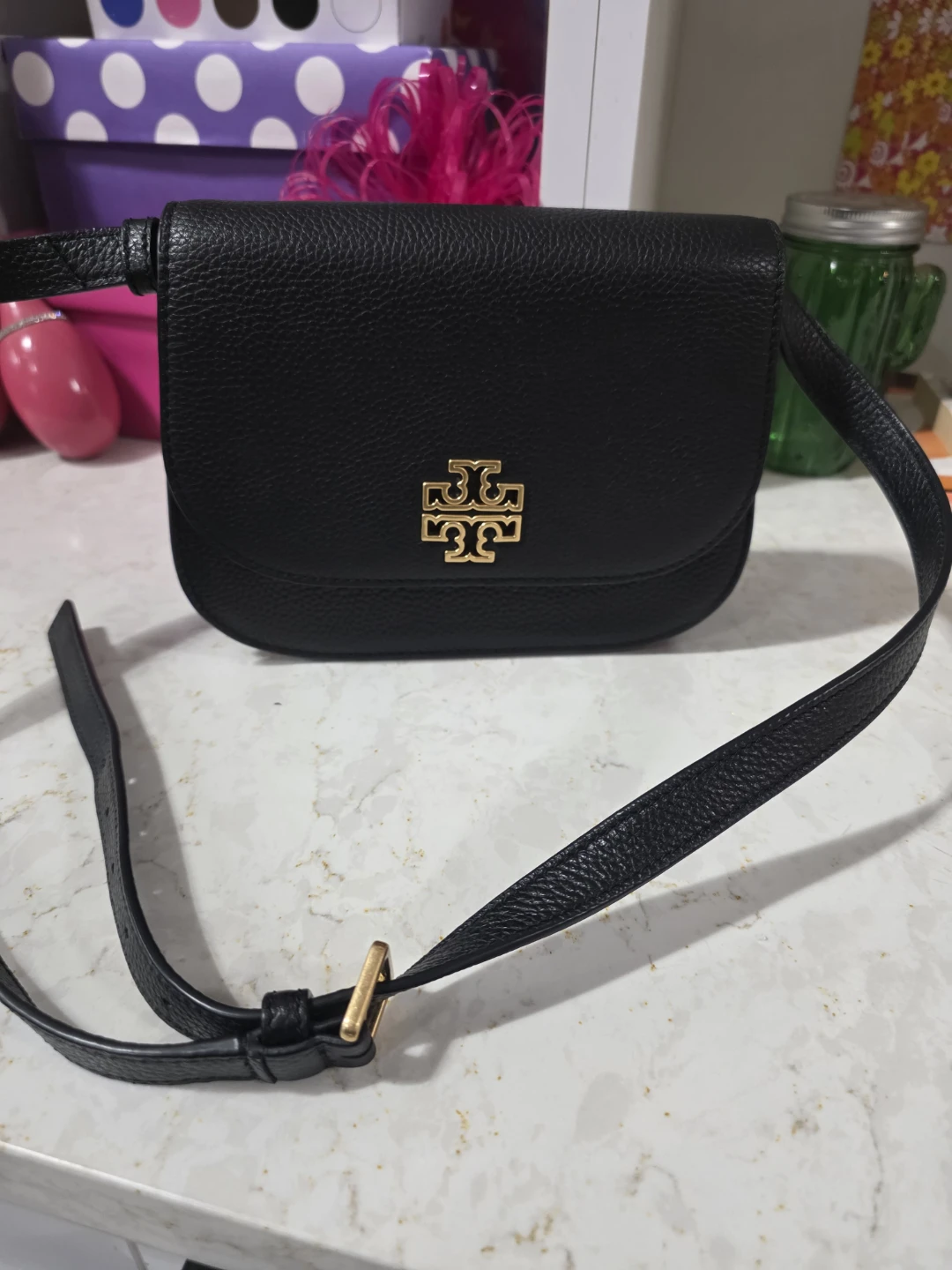 Tory Burch Black Leather Kira sling crossbody Bag
