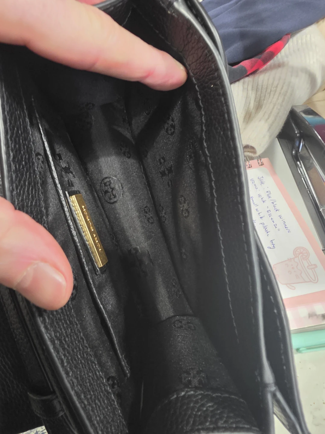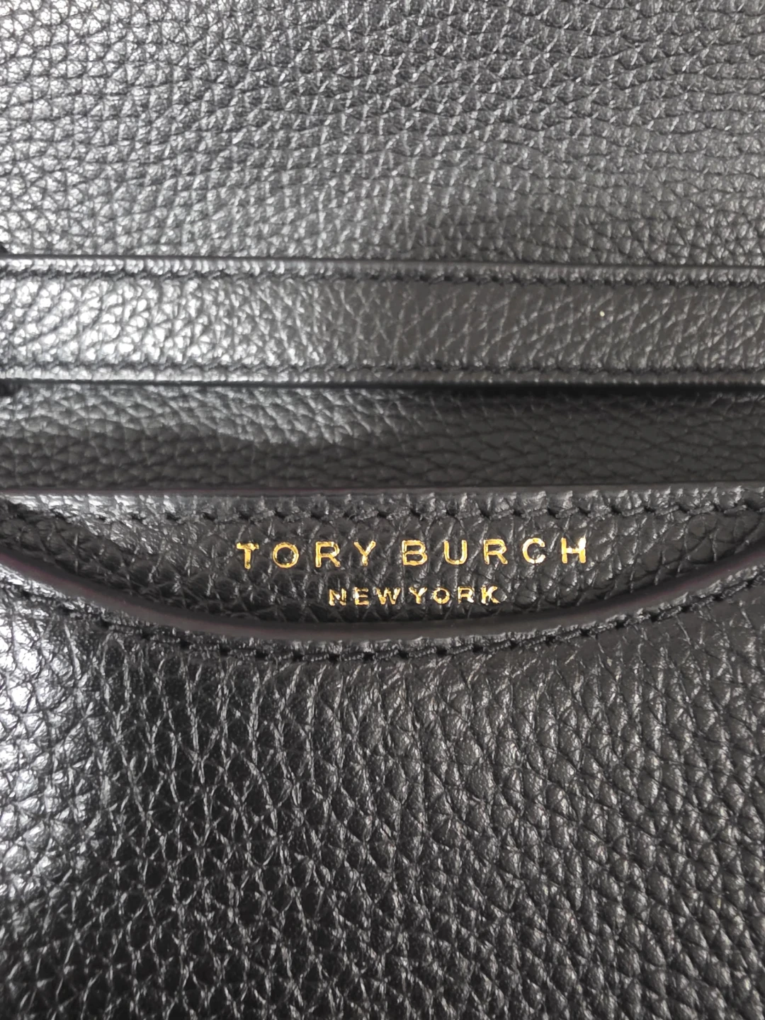 This is a Tory Burch black leather Kira sling bag (crossbody). It features a pebbled leather exterior with gold-tone hardware. The interior has card slots and a zip pocket. This bag is perfect for everyday use or a night out!