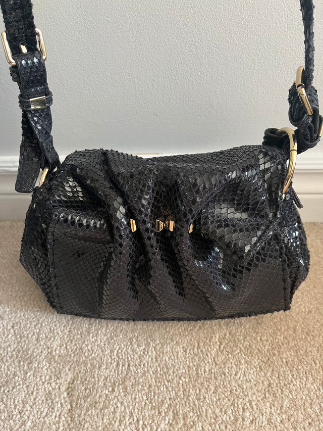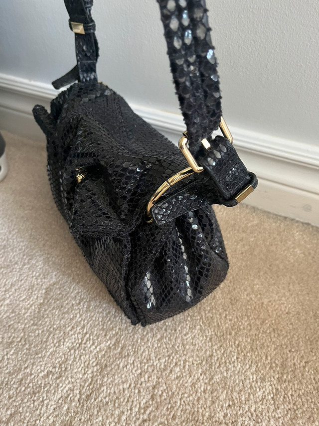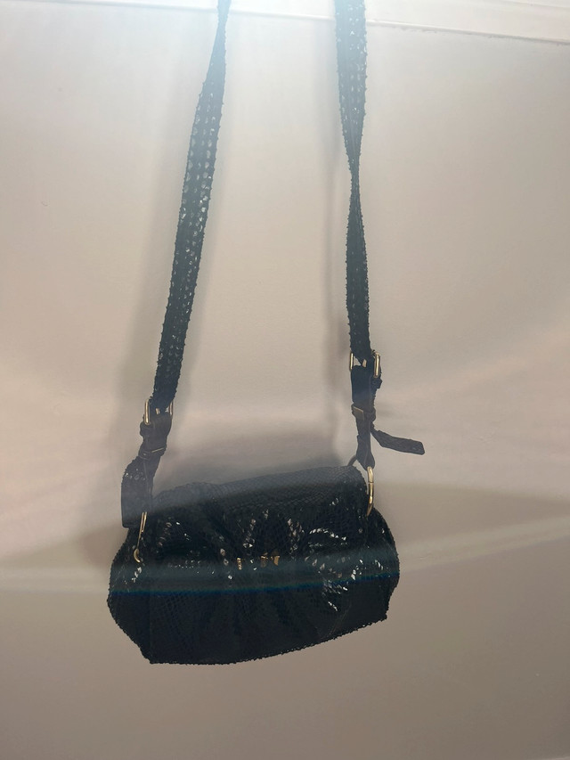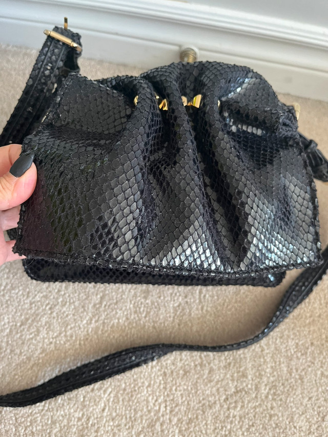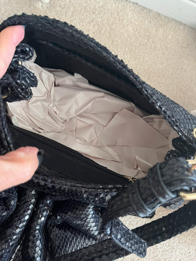 New black snake skin shiny crossbody evening purse Never been worn INZI bag Magnetic closure with zipper pocket inside.