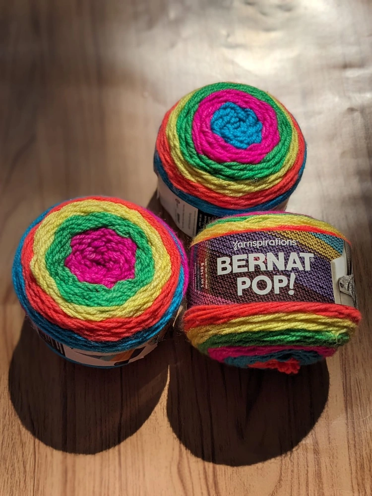Three skeins of Bernat Pop! yarn in the colour "Bugaboo Electrique." Regular prices in store are around $12-$15 each, but I'm selling all 3 for $25 Its very soft so iy would be great for kids sweaters; vibrant apparel like winter hats, scarves, and gloves; blankets; and shawls The yarn is brand new and never used or frogged, I bought it a few years ago and never got around to using it and don't see myself using it anytime soon so I must let go of it lol Either pick it up or I'm willing to ship it