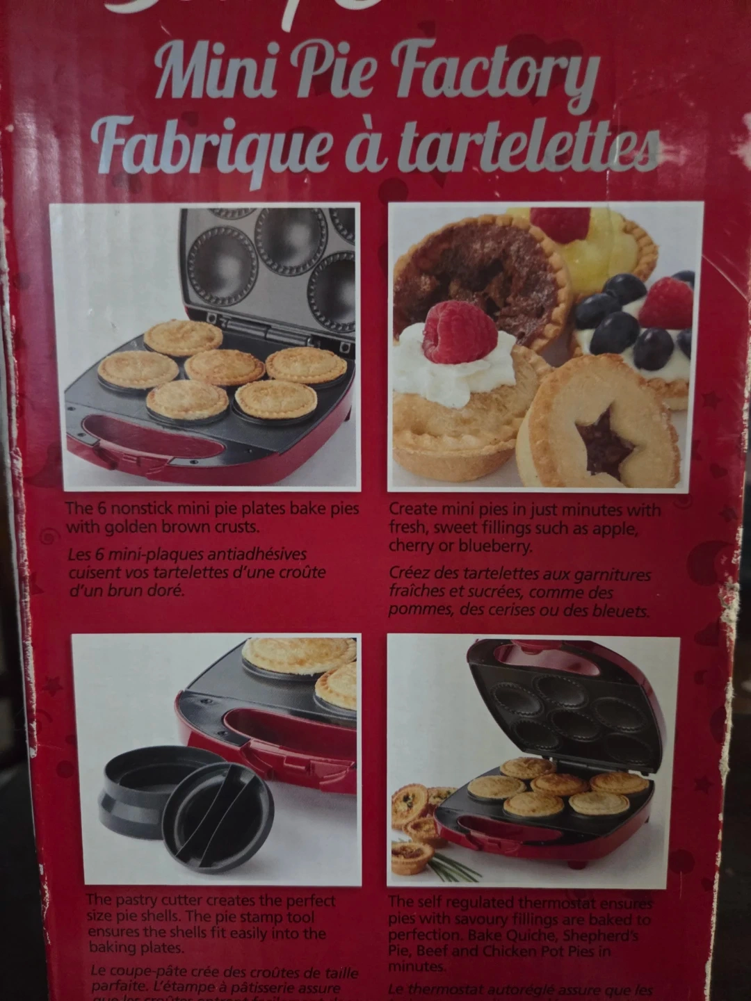 89Bake sweet or savoury personal-sized mini pies without turning on your oven! The box includes a pastry cutter and pie stamp tool, plus a Betty Crocker recipe guide Brand new in box never used
