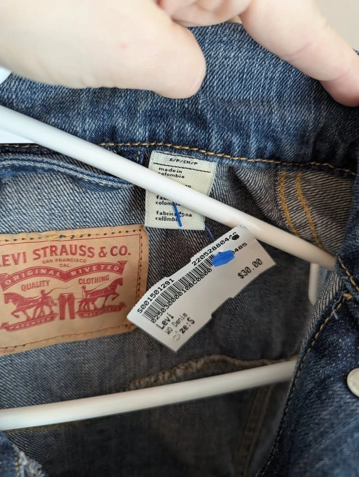 Women's Levi's denim vest, size small. Bought for $30 and missed the return window, it is too small for me! Distressed in appearance but no damage. Asking $20, pickup near Langley Costco.