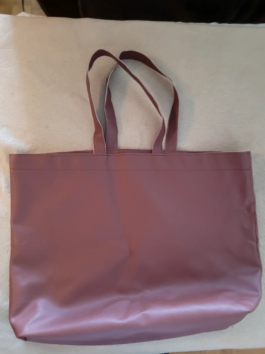 Here's a simple brown tote bag in good condition. It's perfect for carrying groceries or everyday essentials. The material is durable and easy to clean, making it a practical choice for daily use