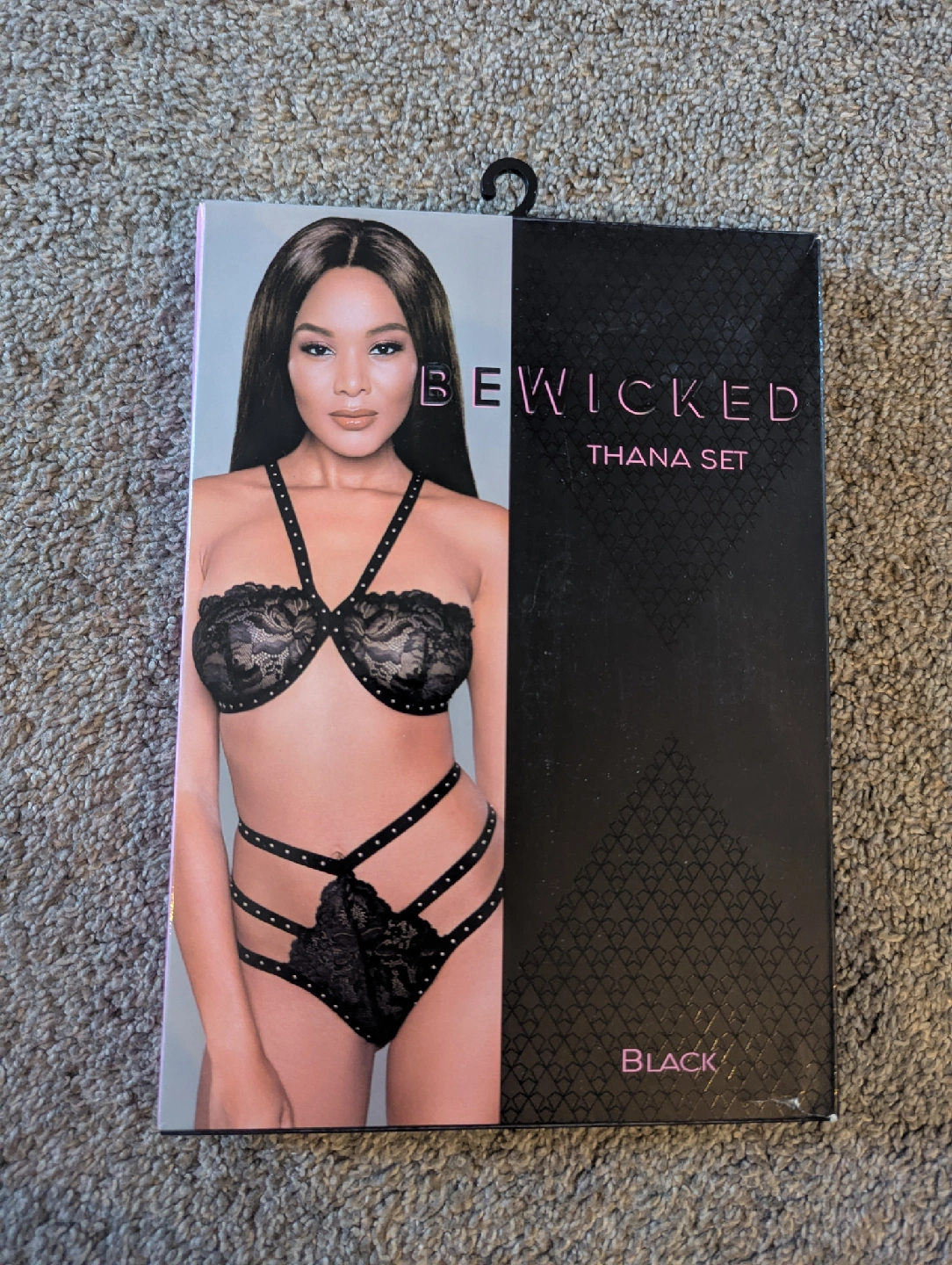 29Selling a brand new Bewicked Thana Set in black, size medium (8-10). It's still in the original packaging. The set is made of 45% polyester and 43% polyamide, with 12% elastane for a comfortable fit. Perfect for adding a little spice to your life! The set I bought originally had a defect that I was able to fix. This is the replacement set that was sent. It has been checked for defects, but never tried on.