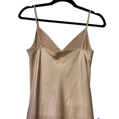 Lingerie dressing isn’t going anywhere except to dinner. This is a classic V-neck slip dress with adjustable straps and a bias cut. It’s made from a drapery satin that is lightweight. Used a handful of times in excellent overall condition. One thread pull in fabric on the front is barely noticeable, which I have included an up-close image of. Fit: Classic, follows your contours with a little room. Length: Midi — intended to hit between knee and low calf. Material: 100% Polyester with a glossy look and feel. Measurements: Bust - 34” (around), Waist - 26”, Hips - 36”.