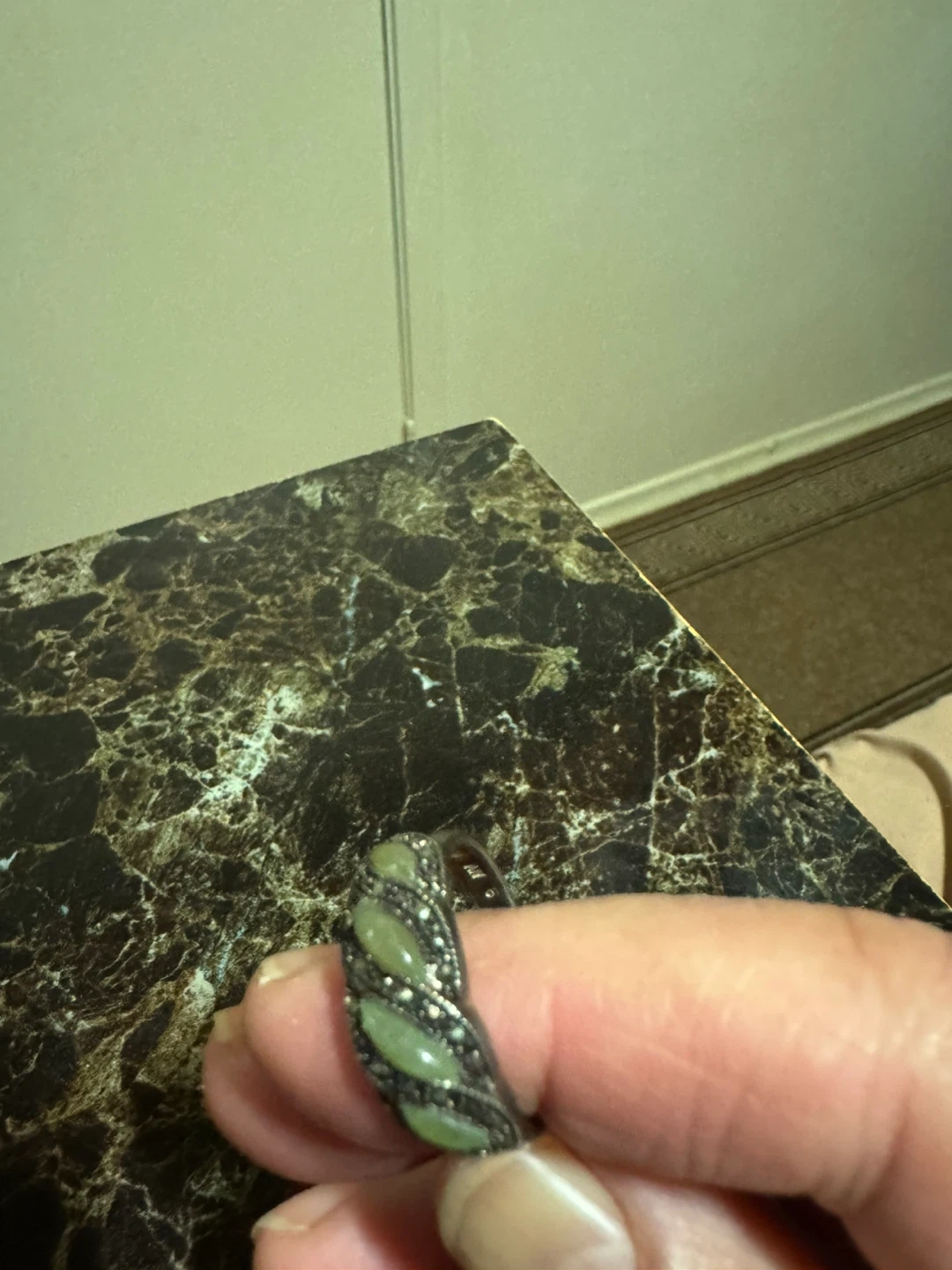 Selling a lovely jade and silver ring! It features a unique leaf design and is in great condition. Perfect for adding a touch of elegance to any outfit