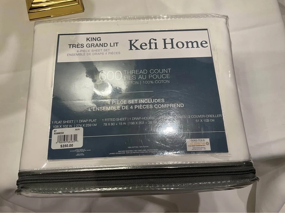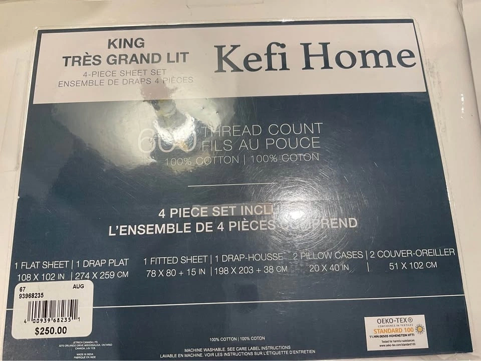 Brand new California King 4 pc (WHITE) 600 thread count 100% cotton sheet set. Purchased but ended up getting a King size bed instead. Still in original packaging. Cash only. Located in Richmond Hill at Bathurst & King Rd.