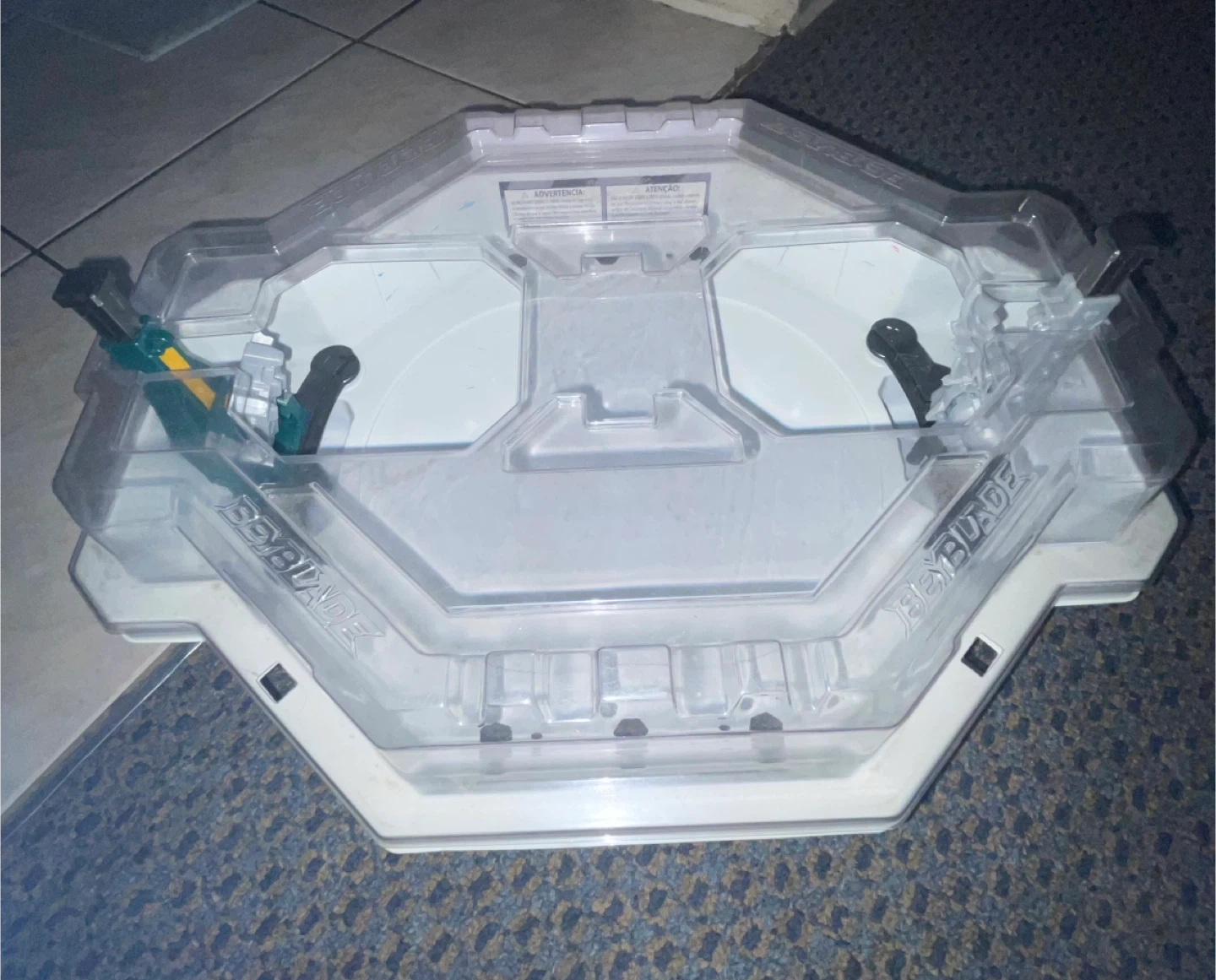 68Selling a Beyblade battle arena! It's in good condition and ready for some epic battles. Perfect for Beyblade enthusiasts! Has unique design and cage.