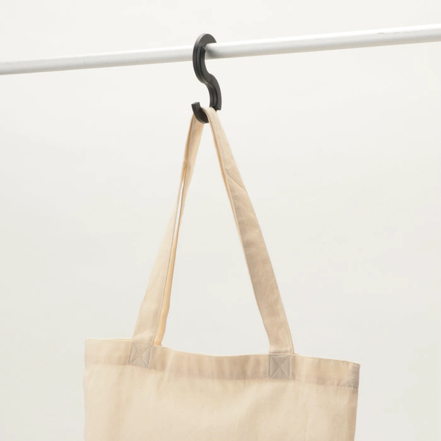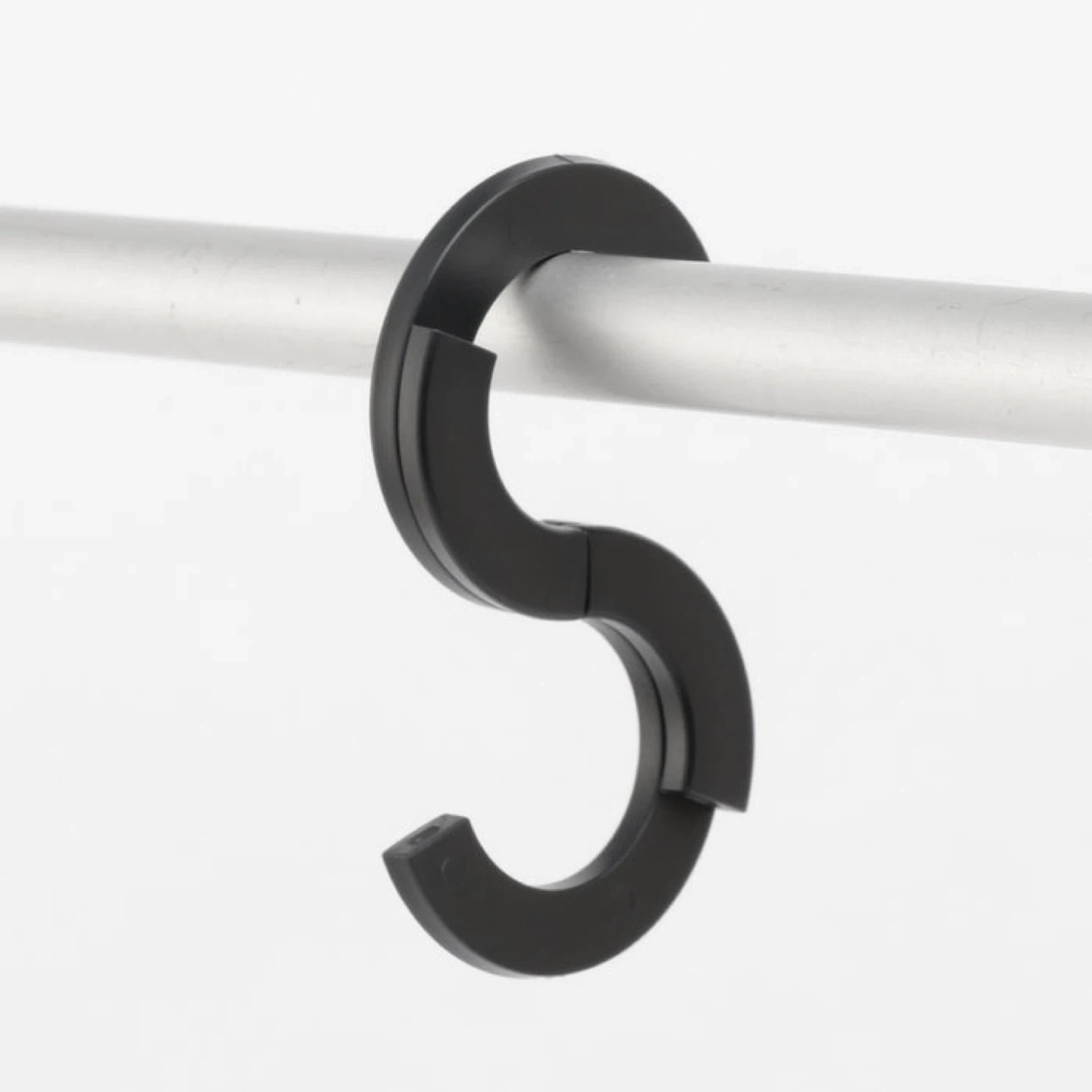 Durable S-shaped hook. Sleek black design. Ideal for organizing.