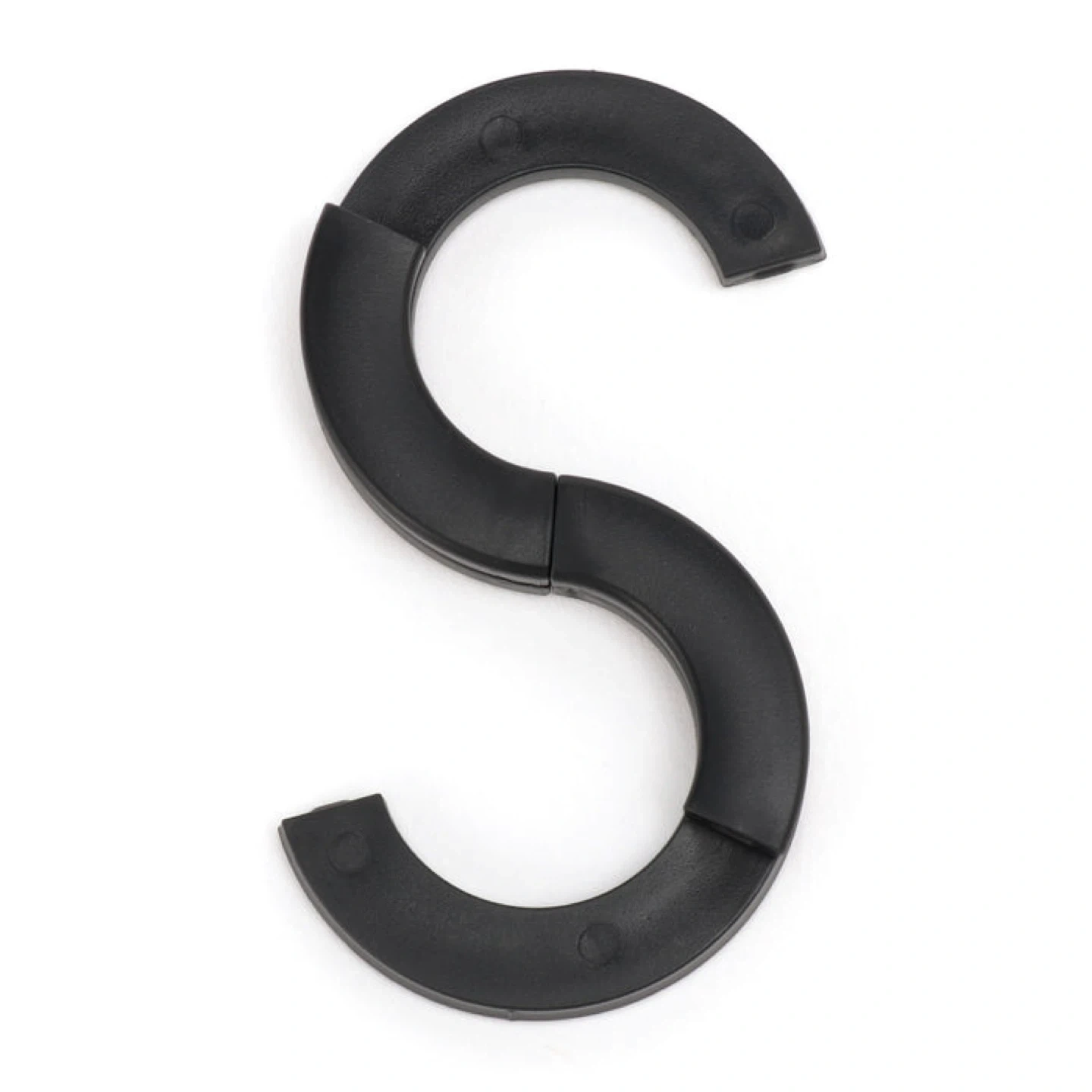 Durable S-shaped hook. Sleek black design. Ideal for organizing.