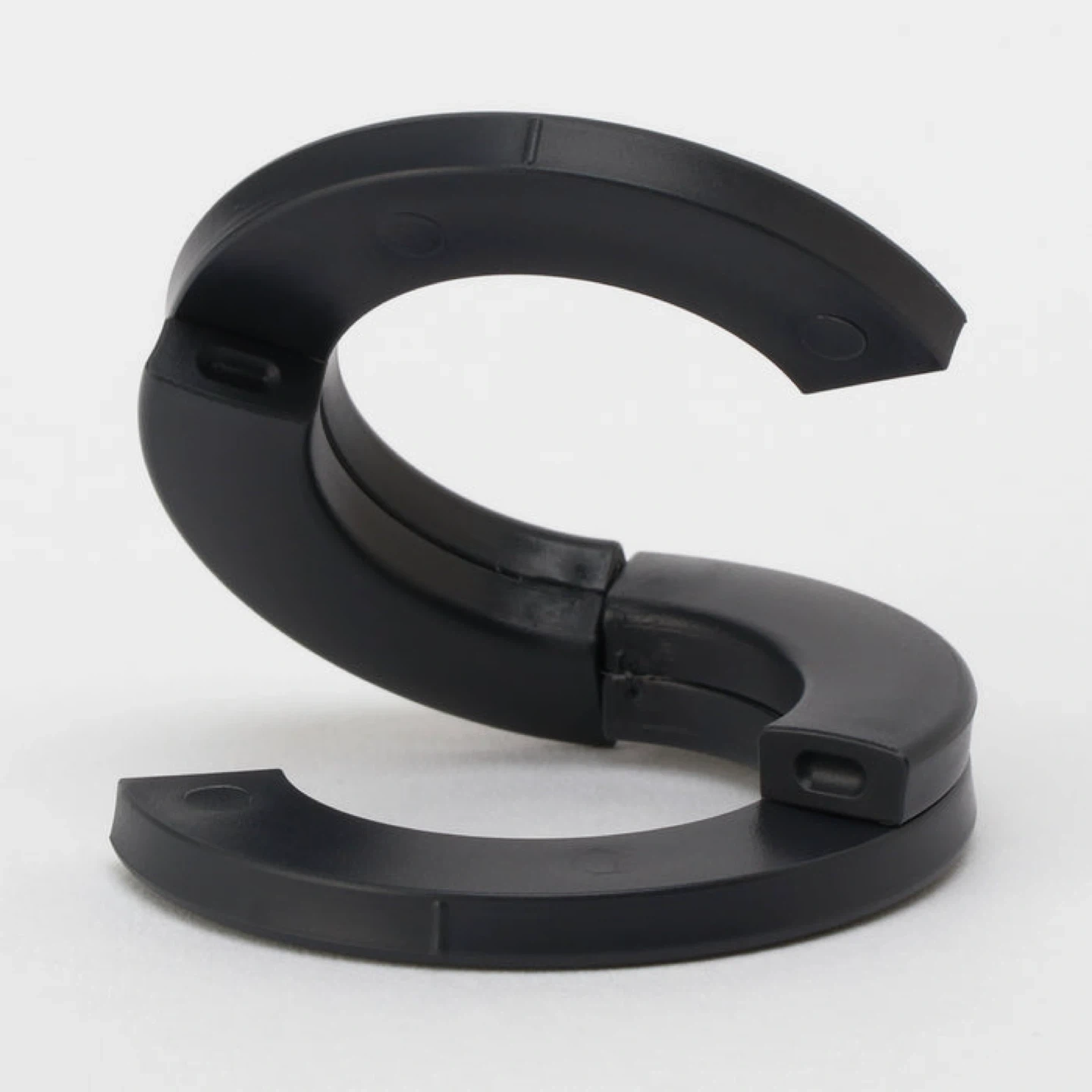 These black S-hooks are made of durable plastic. They're useful for hanging items in closets, kitchens, in the car or any workshops.