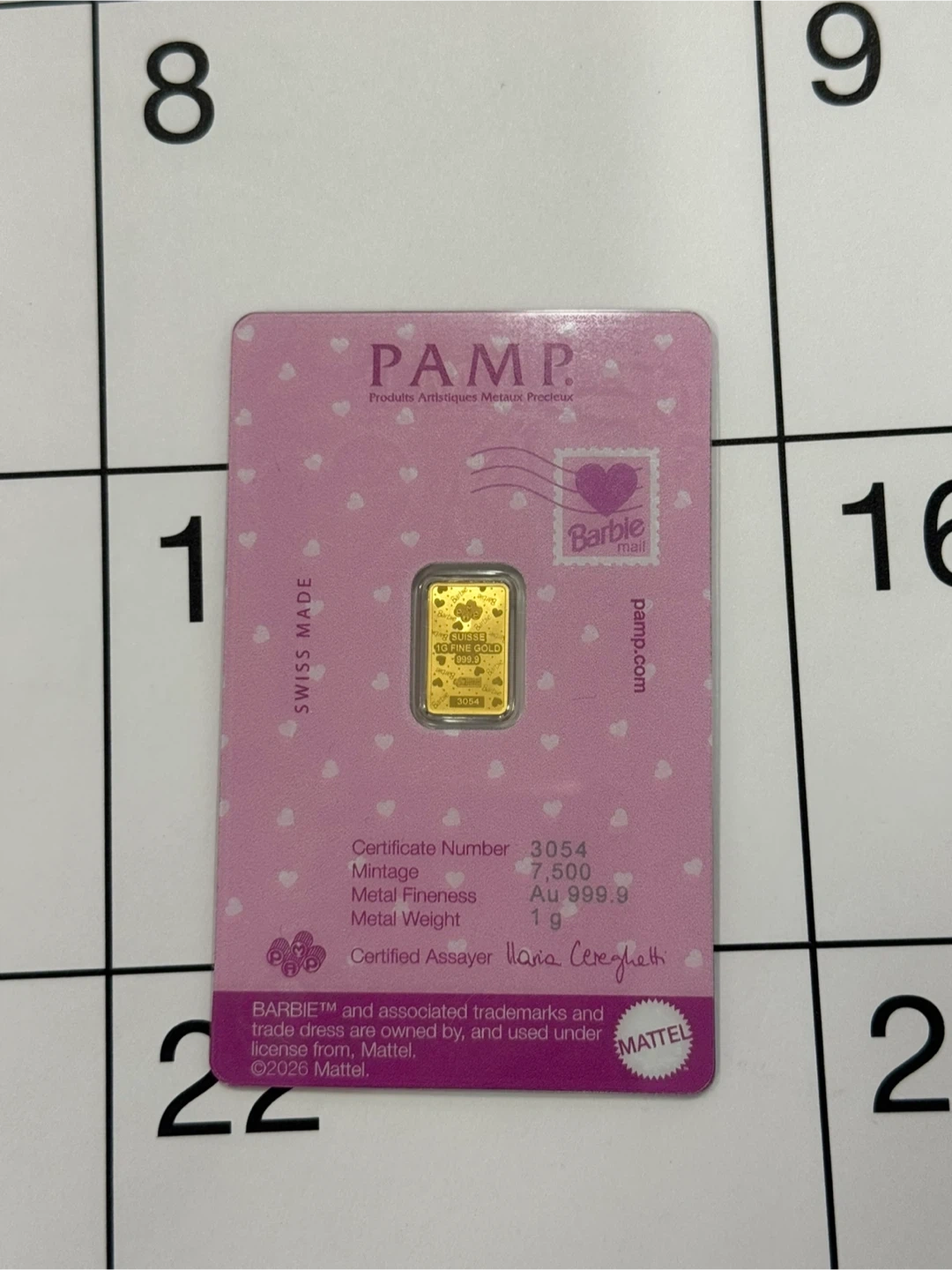 PAMP Barbie 1G Pure Gold Bar in essay 2nd edition