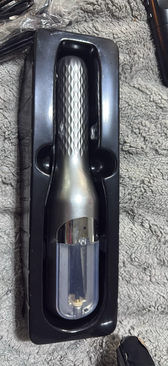 Selling a new cordless split end hair trimmer! It's designed to snip the ends, not the length. The trimmer is silver and comes in its original box