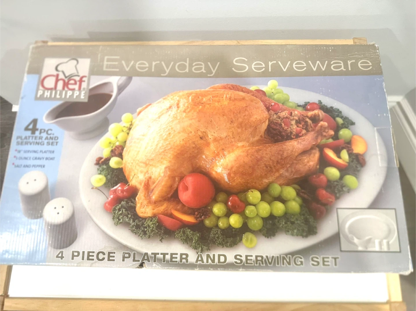 This Chef Philippe set includes a 18" serving platter, a gravy boat, and salt and pepper shakers. It's great for serving holiday meals or entertaining guests. Perfect for anyone who loves to host dinner parties!