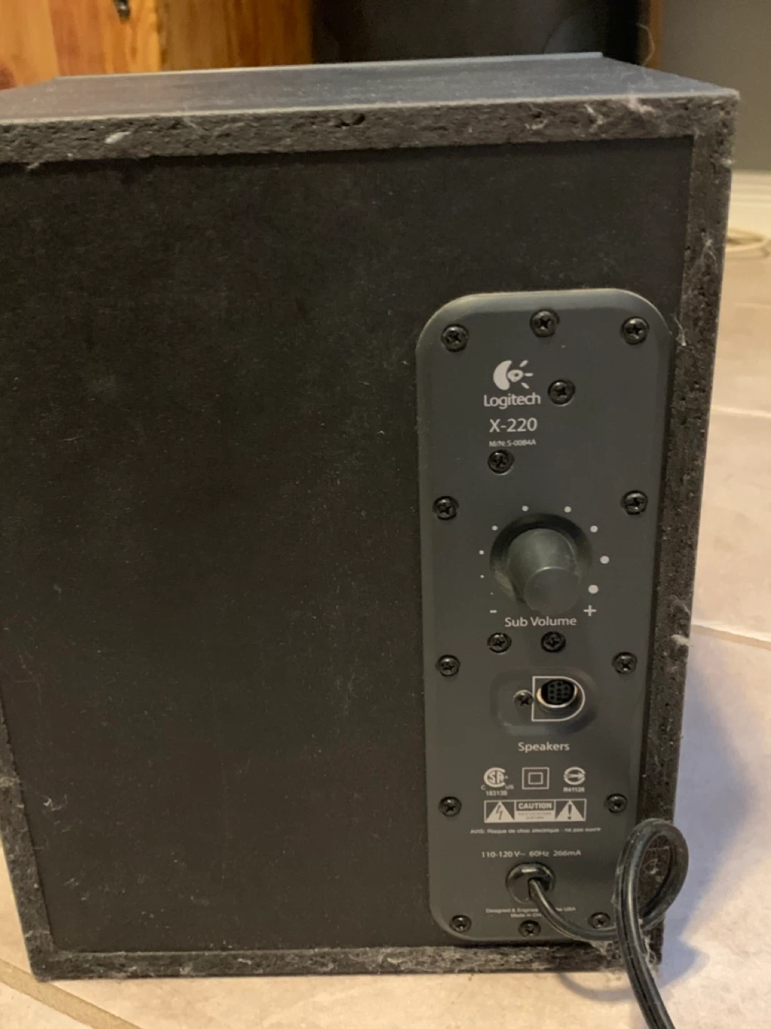 Selling a Logitech X-220 subwoofer! It's in good condition and ready to enhance your audio experience. Features include a sub volume control and speaker output.