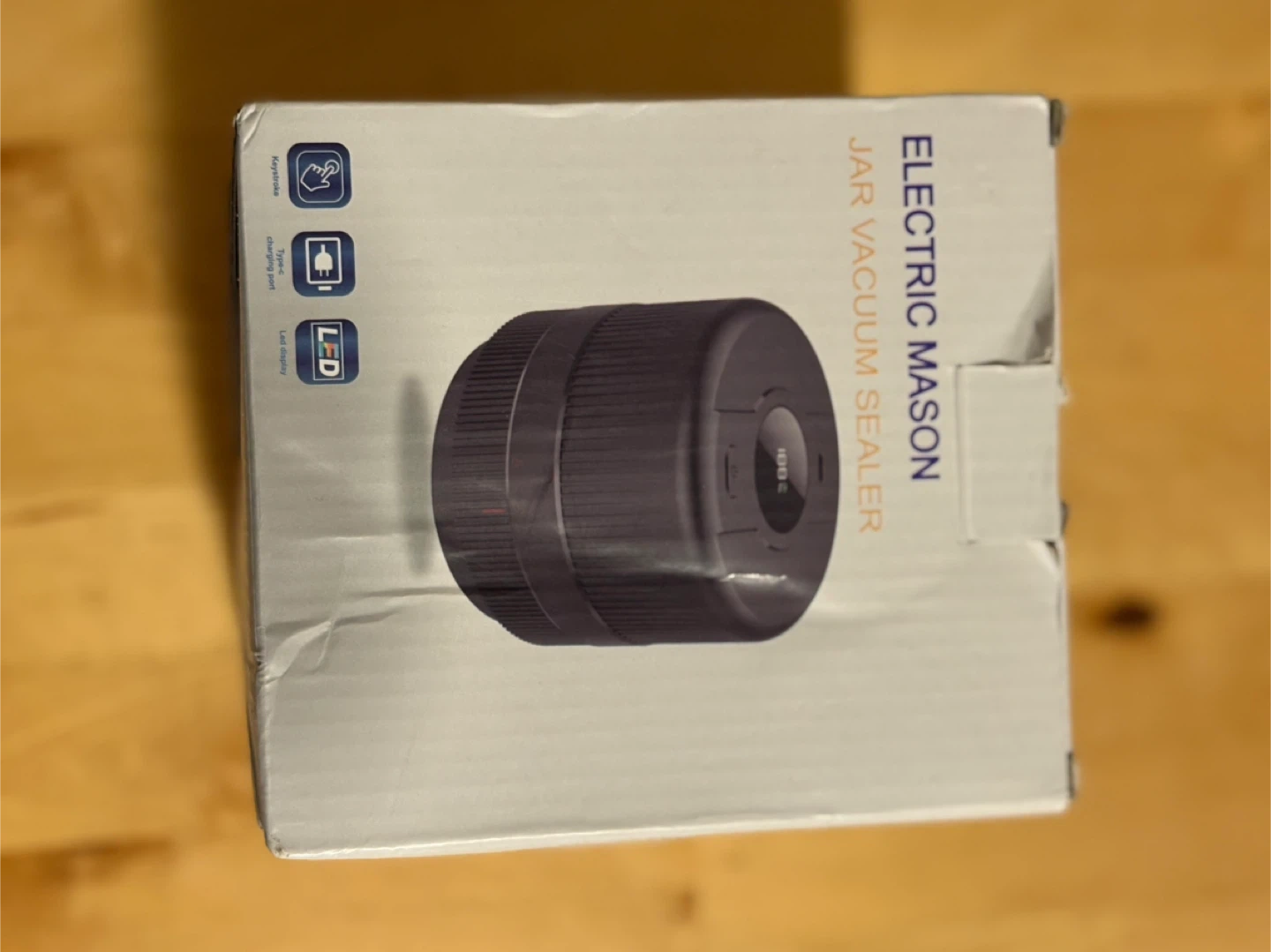 Selling an Electric Mason Jar Vacuum Sealer, brand new in the box! It features a keystroke function, a Type-C charging port, and an LED display. Perfect for keeping your goods fresh!