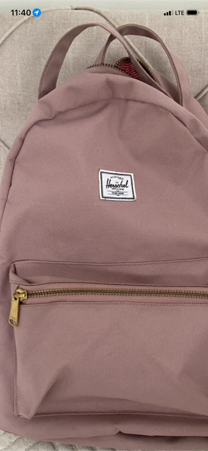 Herschel backpack in a lovely mauve colour. It features a classic striped lining and a front zippered pocket. This bag's spacious interior is great for carrying your daily essentials!