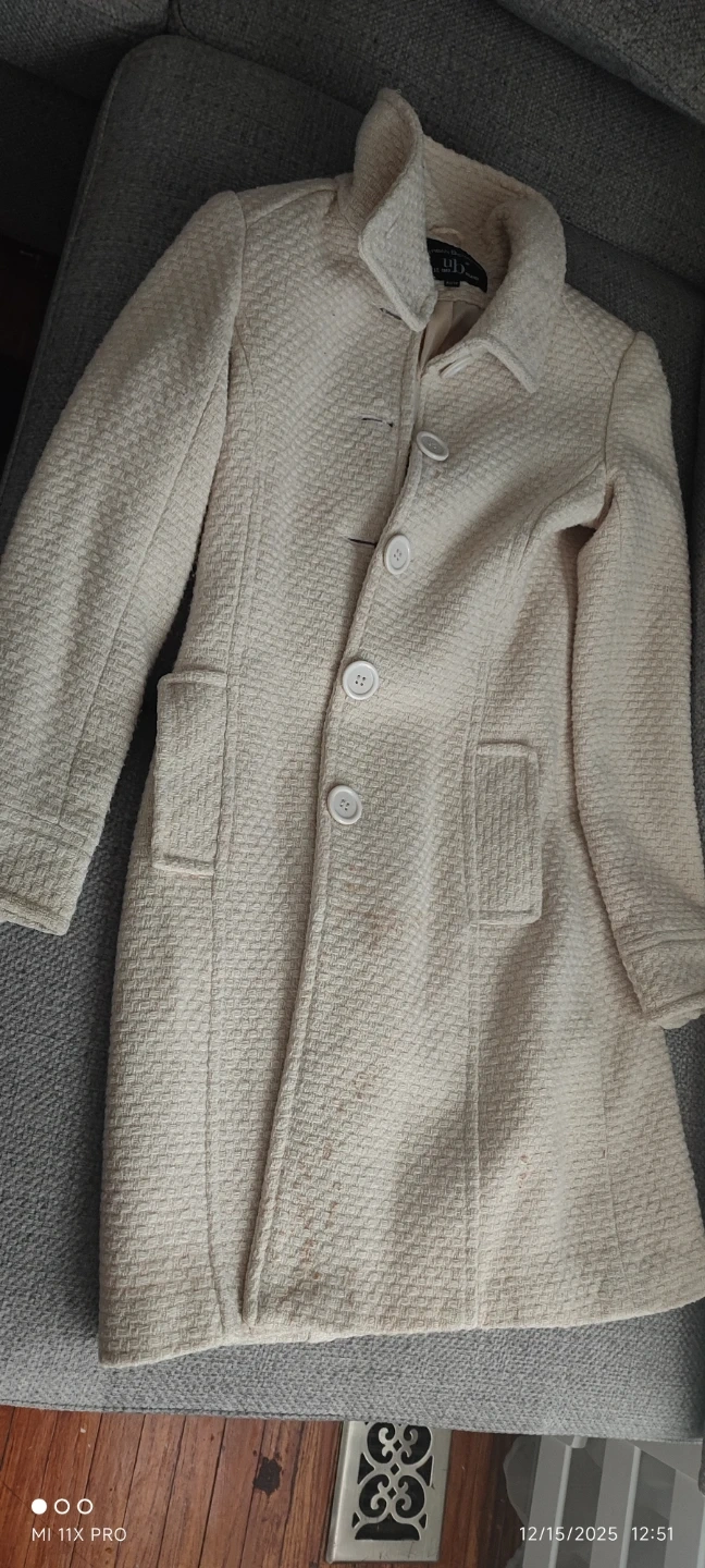 Small size coat Selling a cream-coloured wool blend coat from Ub. There are some signs of wear, as shown in the photos. It's a stylish and warm piece for the cooler months!