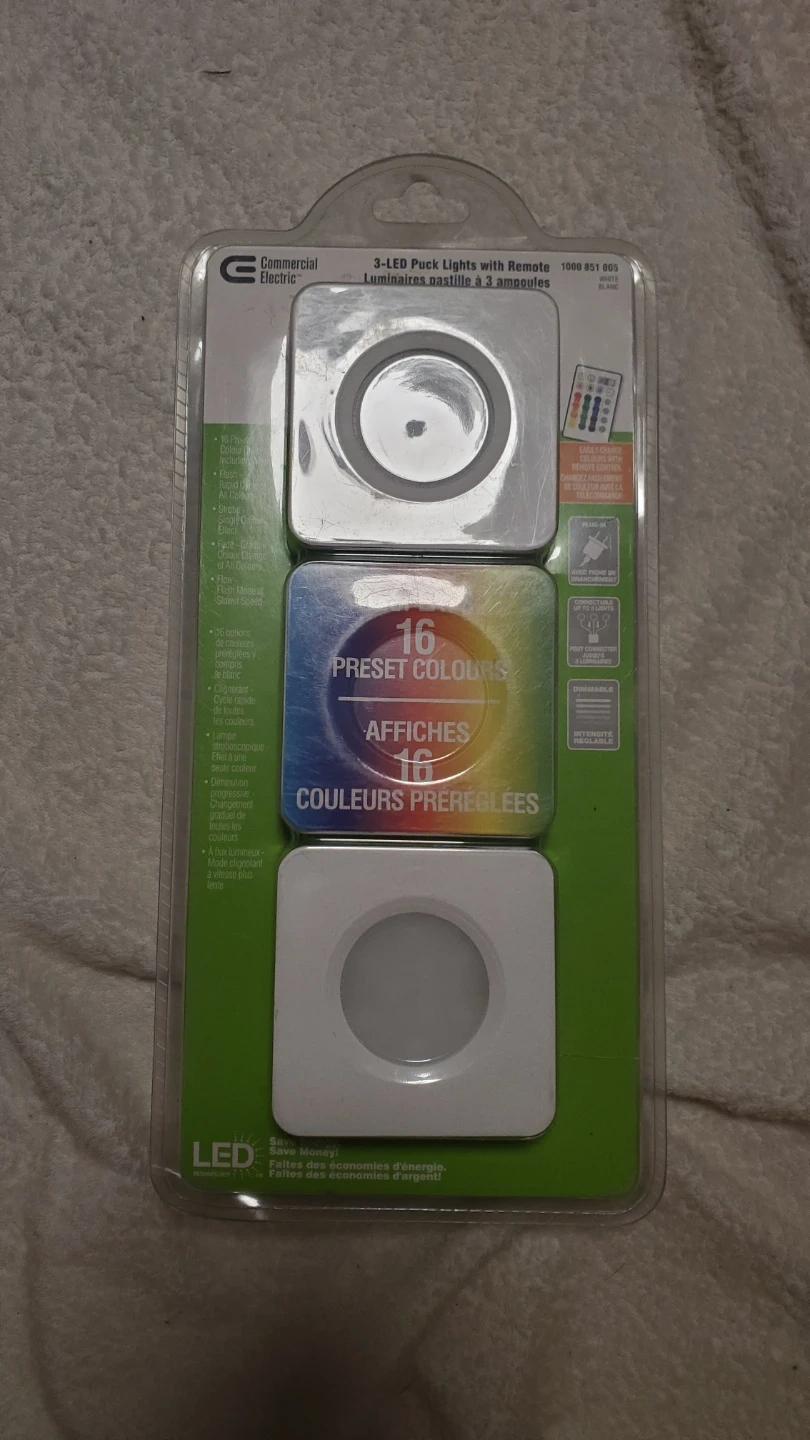 This kit includes 3 LED puck lights with a remote control. They offer 16 preset colours and adjustable colour effects. The lights have a 25,000-hour operating life and come with a 1.52m power cord. Includes connection box and cable ties.
