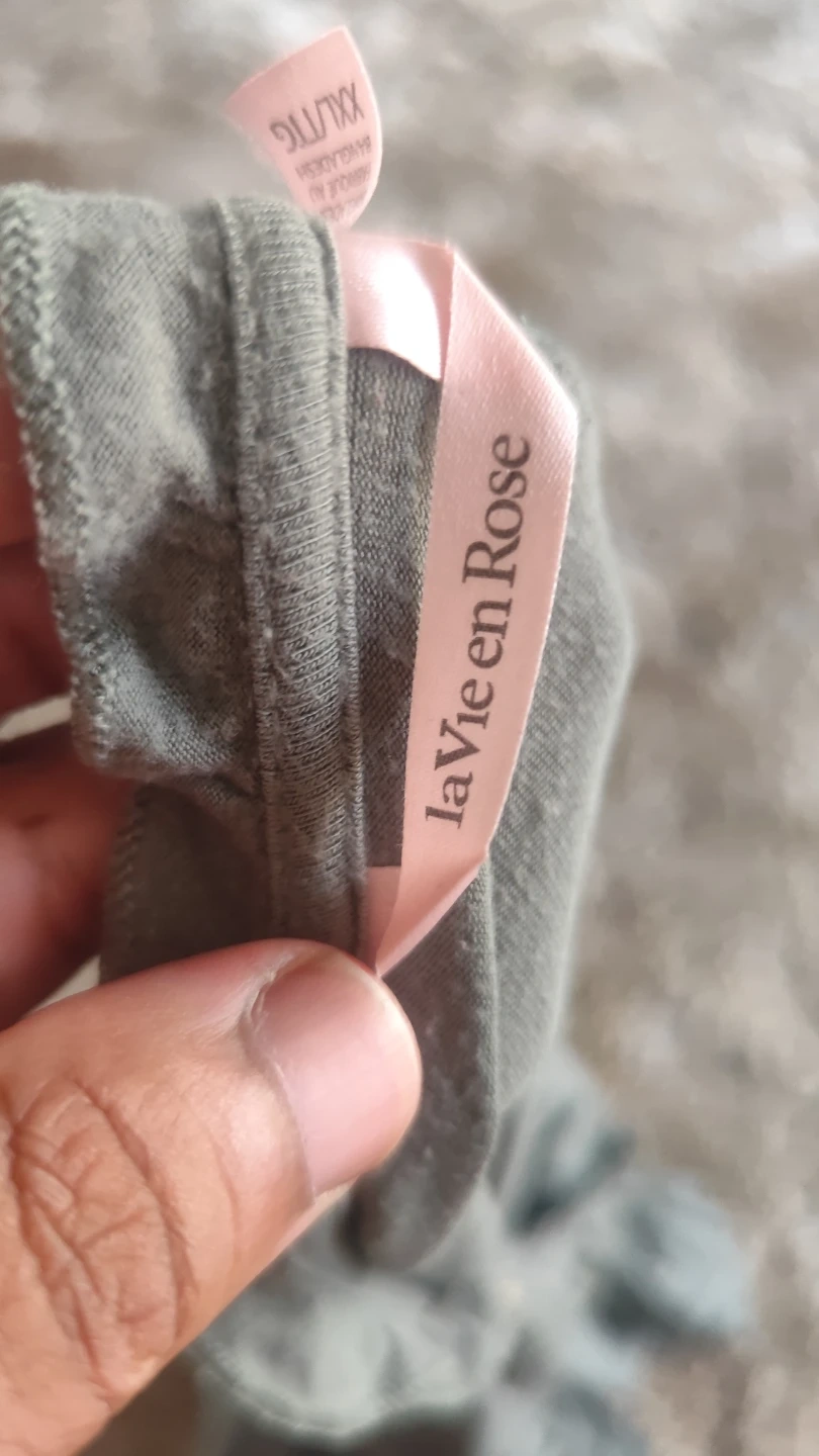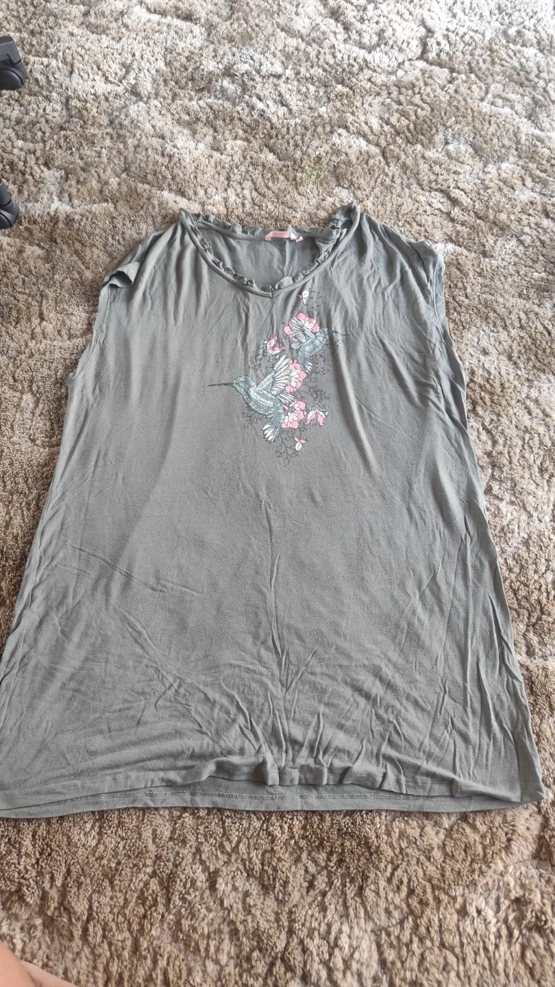 la Vie en Rose graphic t-shirt in a soft green colour. Size XXLarge. Made in Bangladesh. It's a comfortable top with a sweet hummingbird and floral design printed on the front.