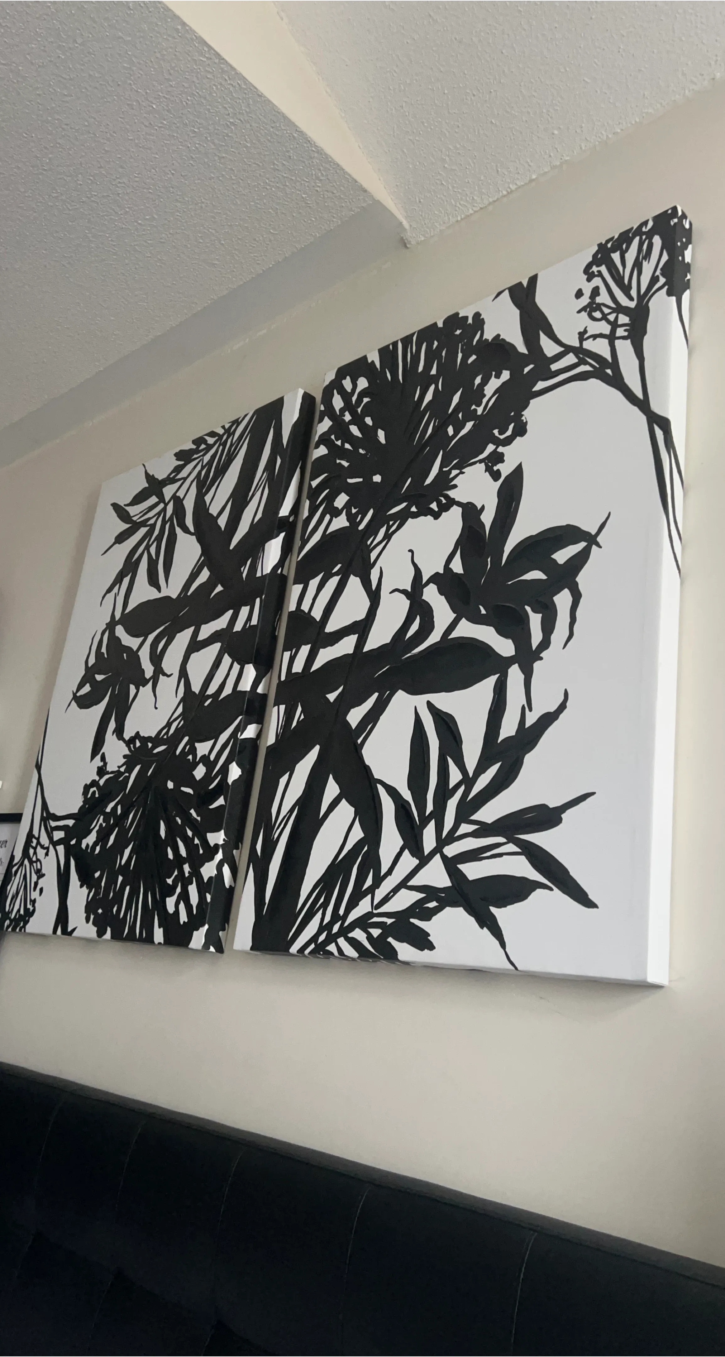 Selling a set of two canvas art pieces. They feature a black and white floral design that would look great in any room. They're in great shape and ready to be hung up!