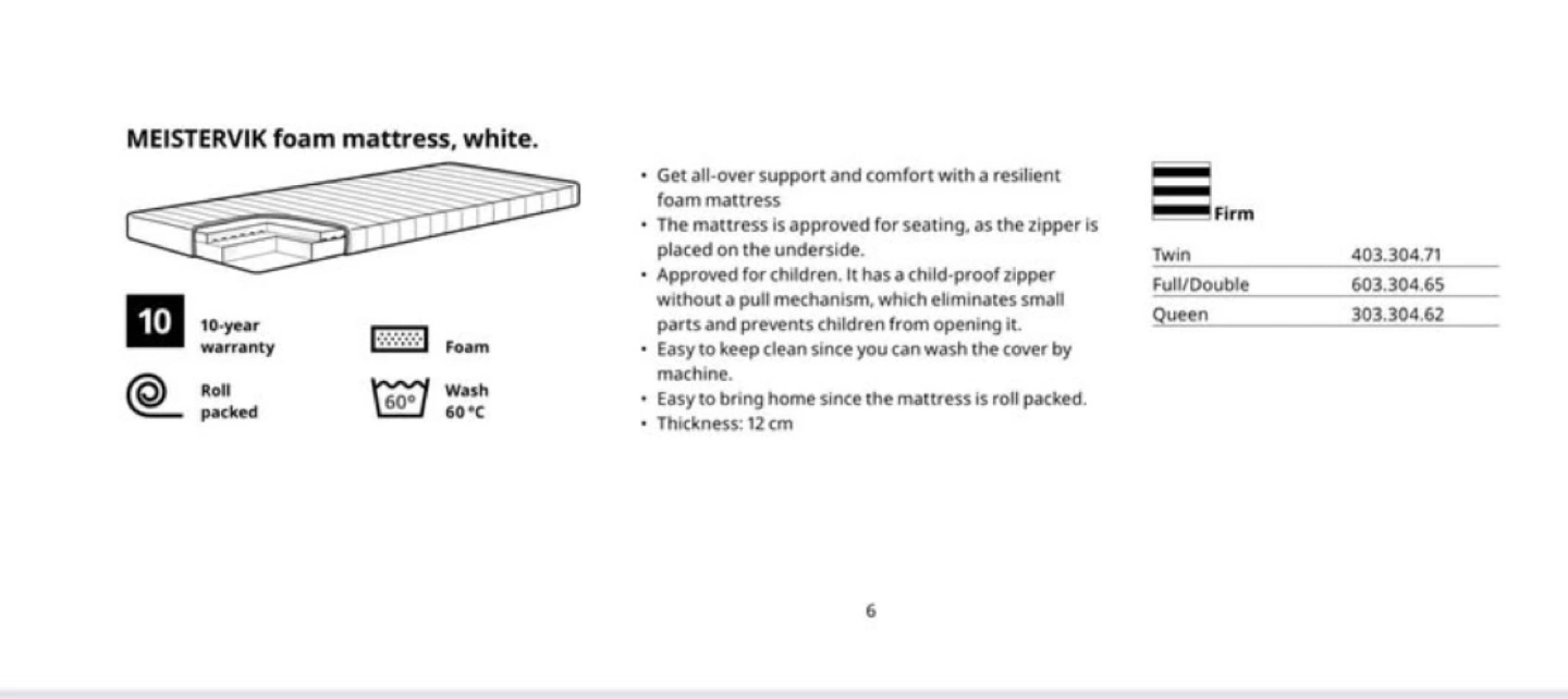 This is a FIRM foam mattress that’s been discontinued by IKEA and replaced with a lower quality one that is NOT firm.