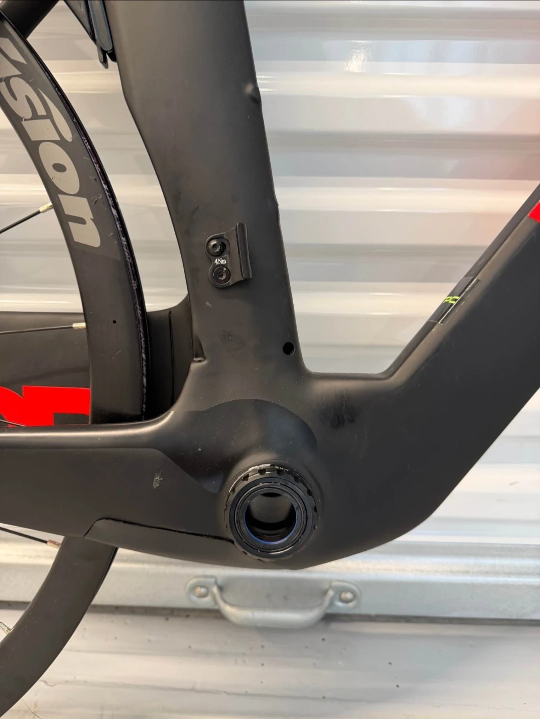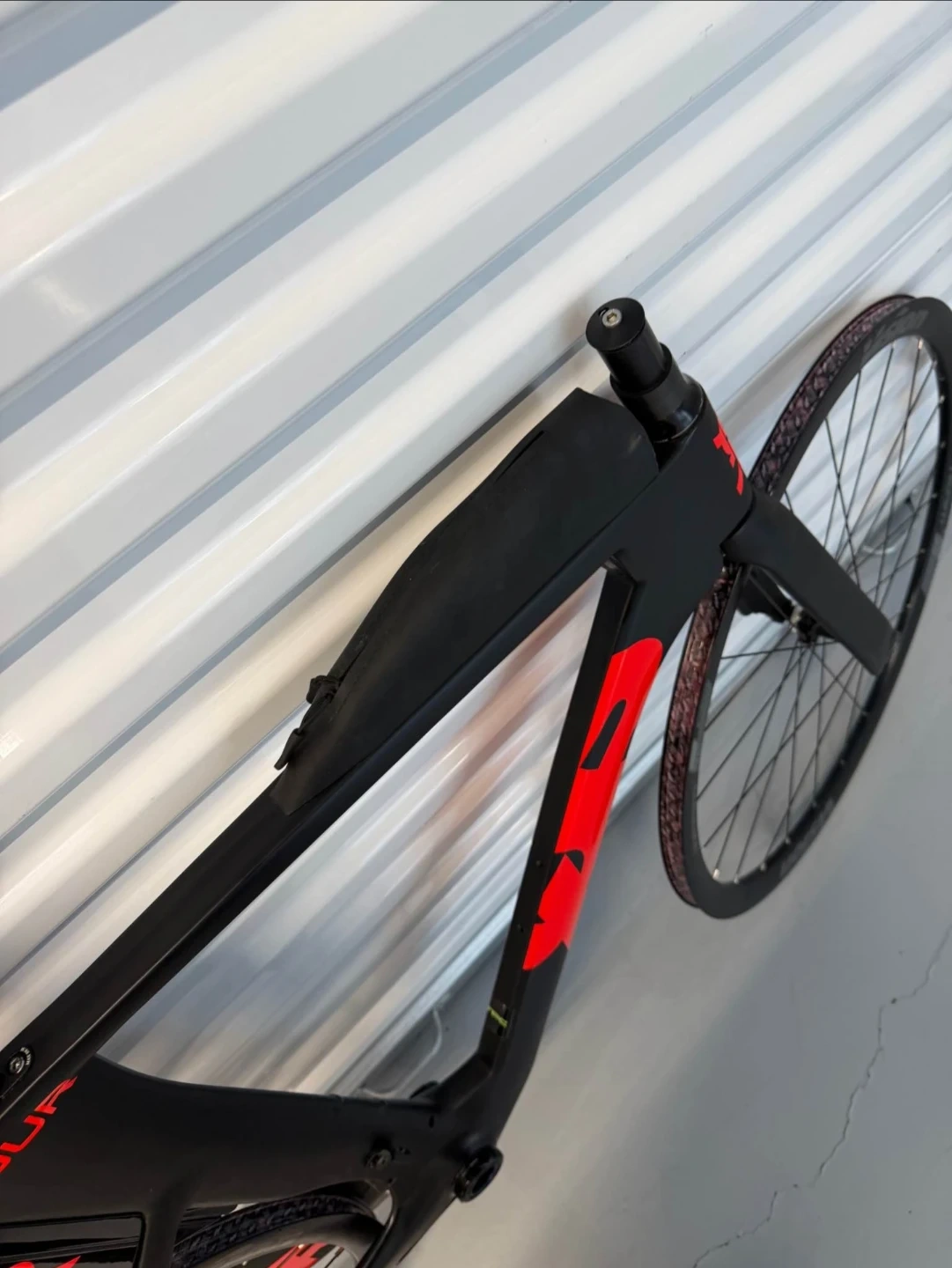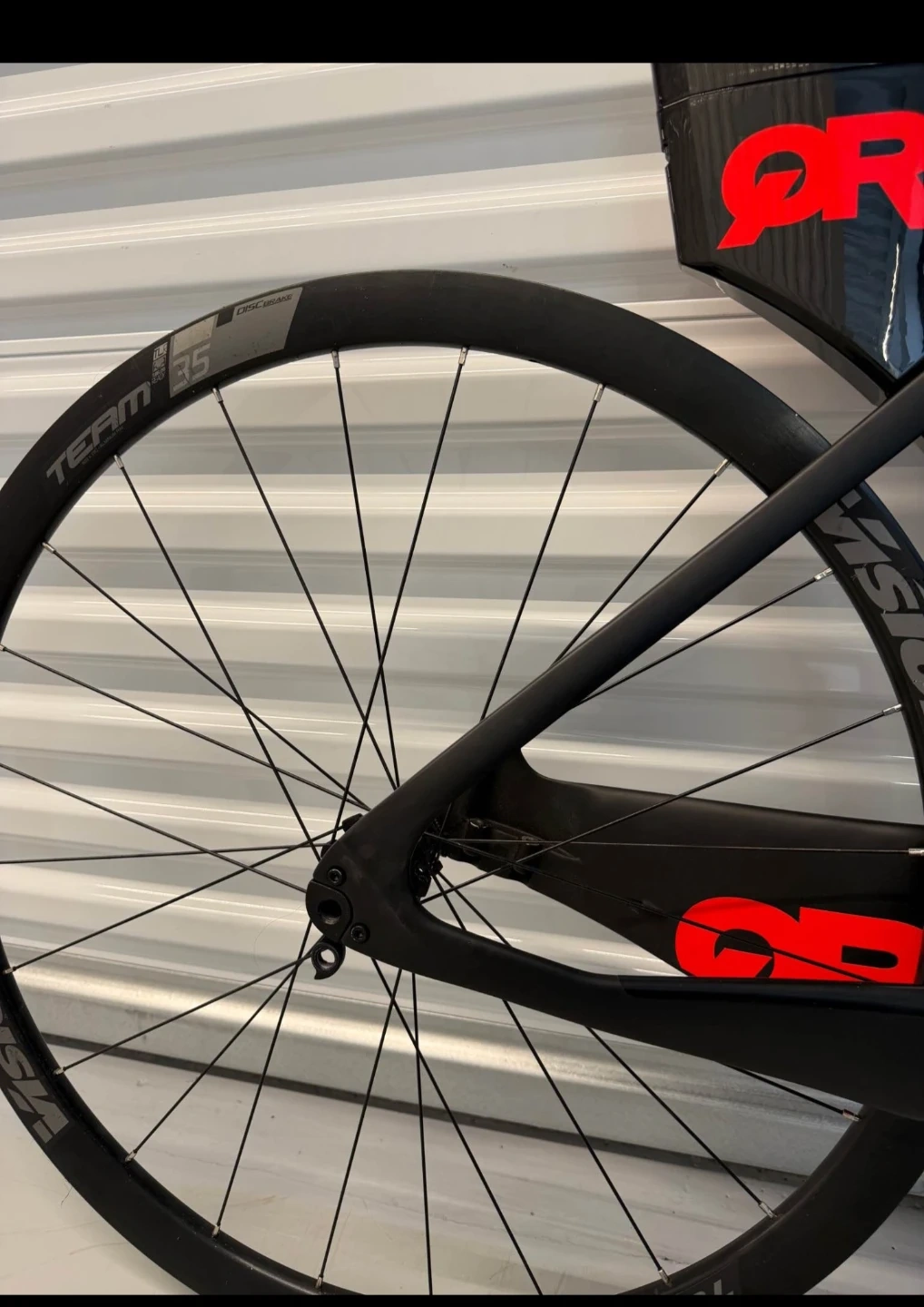 This is a high-end triathlon/time trial frameset, known for its aerodynamic design and lightweight 30T carbon construction. Disc brake setup provides excellent stopping power and control in all conditions.