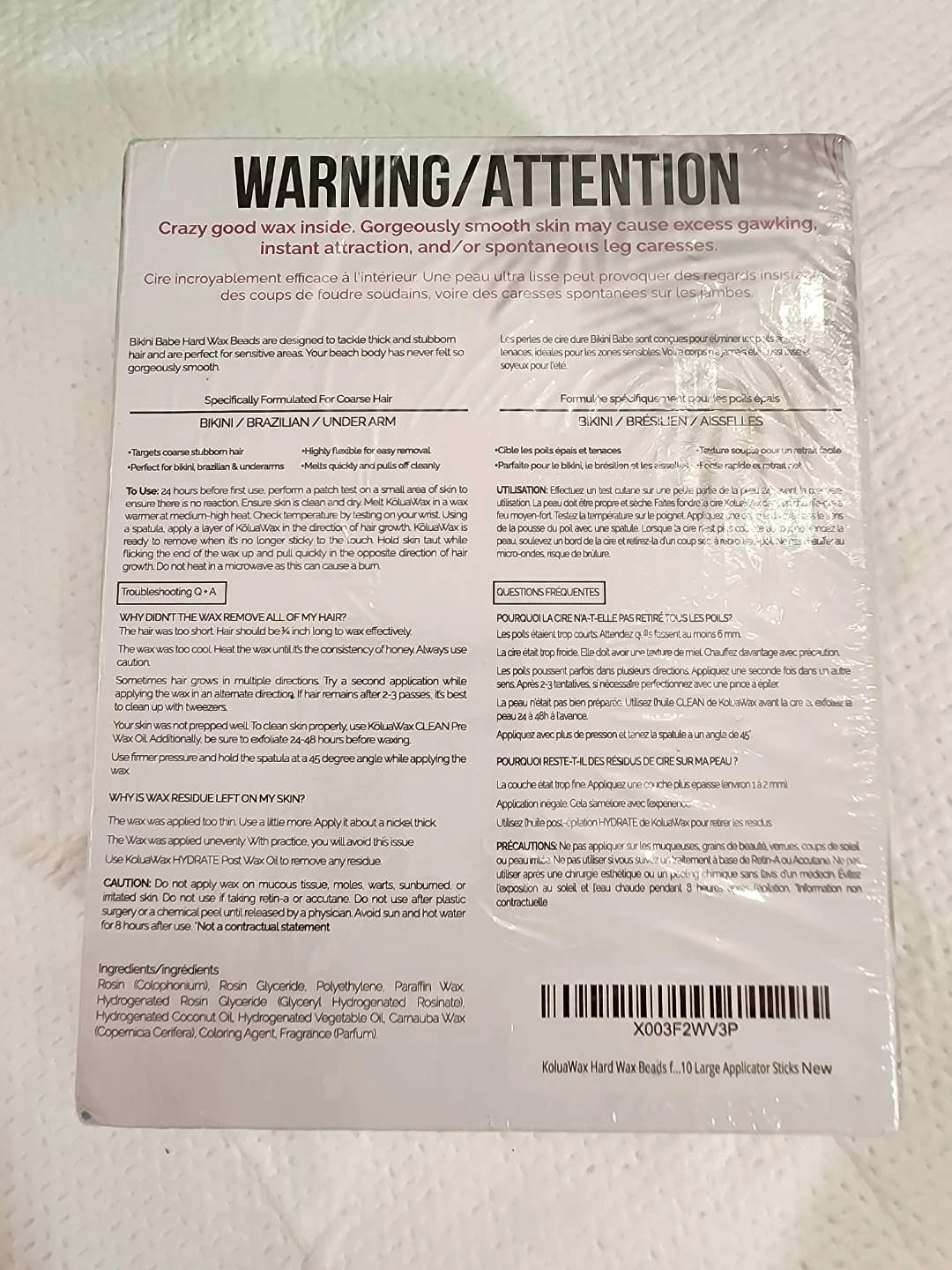 I'm selling KoluaWax Bikini Babe Hard Wax Beads for smooth hair removal. These hard wax beads are designed to tackle thick and stubborn hair, leaving your body perfectly smooth. It's specially formulated for bikini, Brazilian, and underarm areas. These wax beads are highly effective for easy removal and melts quickly and pulls off cleanly