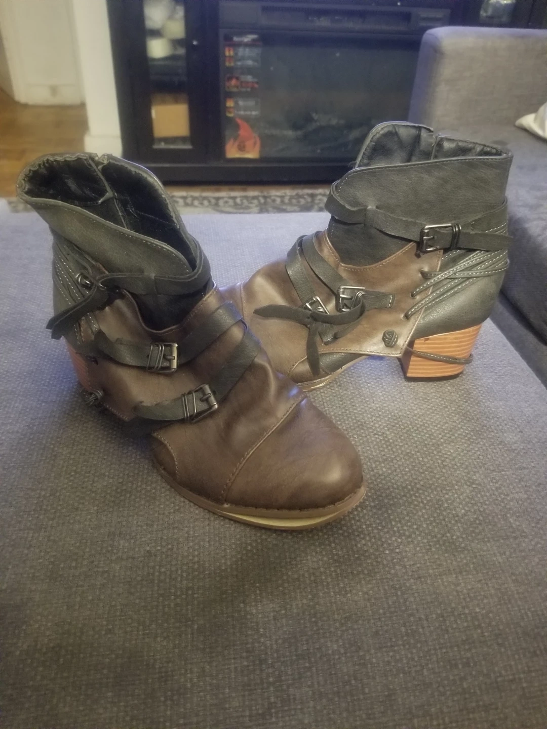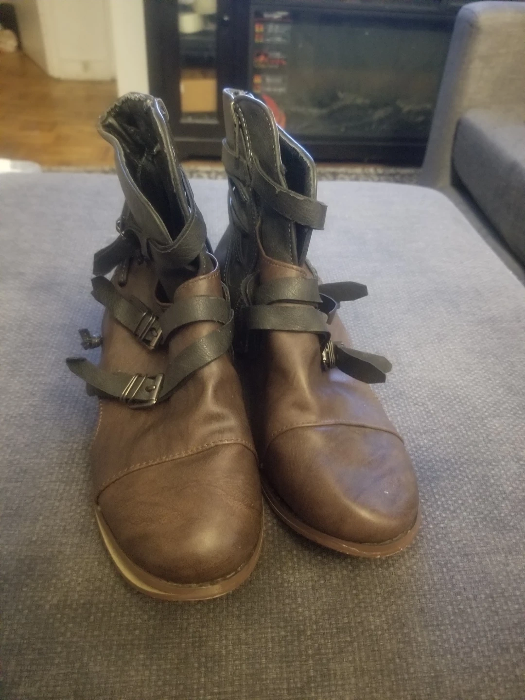 Stylish brown ankle boots featuring multiple buckle strap accents. These boots have a side zipper for easy on and off. Size 8 Really Good Condition If Interested Definitely Let me know 😊 Asking $10 for Them