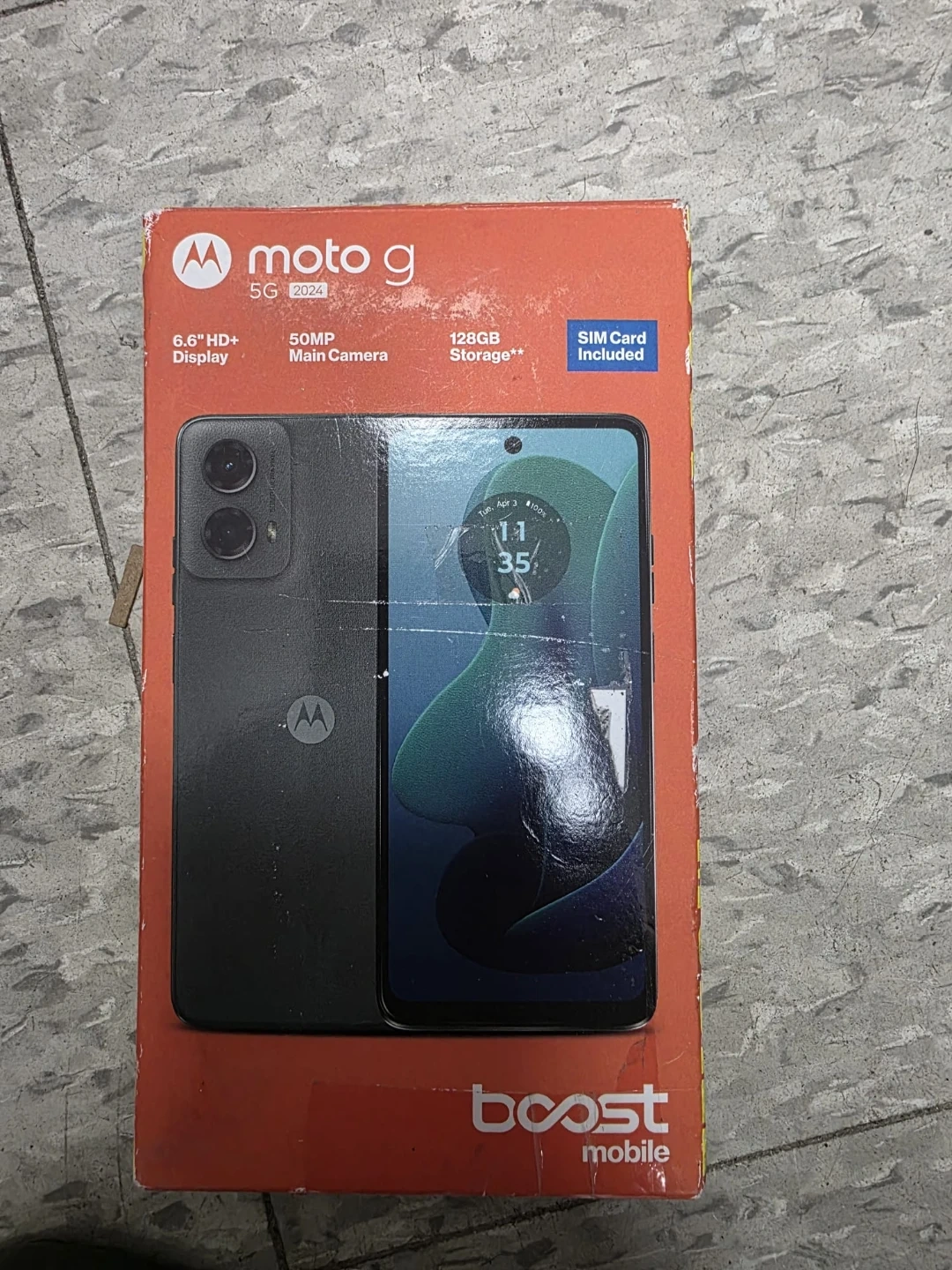 This is a Motorola Moto G 5G 2024 cell phone. It has a 6.6" HD+ display and a 50MP main camera. The phone comes with 128GB storage and a SIM card is included. It's perfect for everyday use and capturing clear photos!