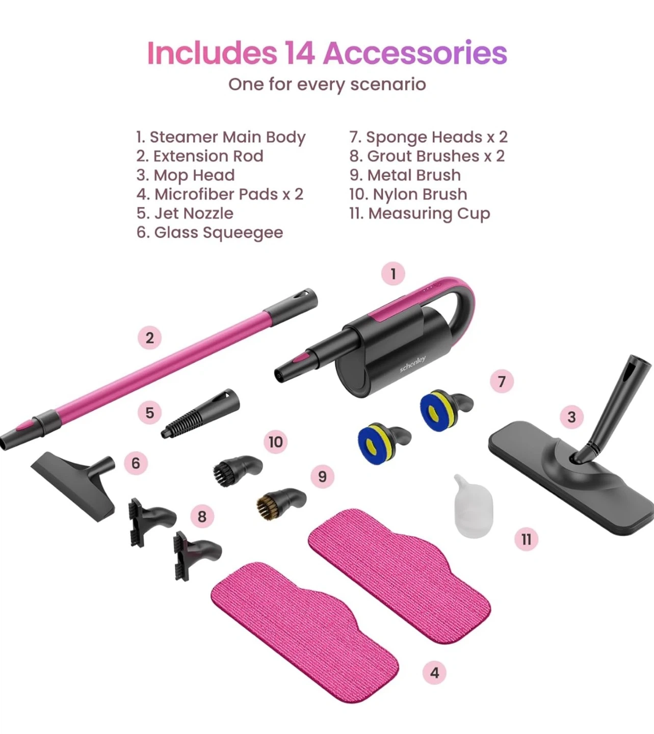Steam Mop Cleaner with Detachable Handheld Steamer for Cleaning Hardwood, Laminate Floor, Tiles and Grout, with 14-in-1 Multi-purpose Accessories and Washable Microfiber Pads