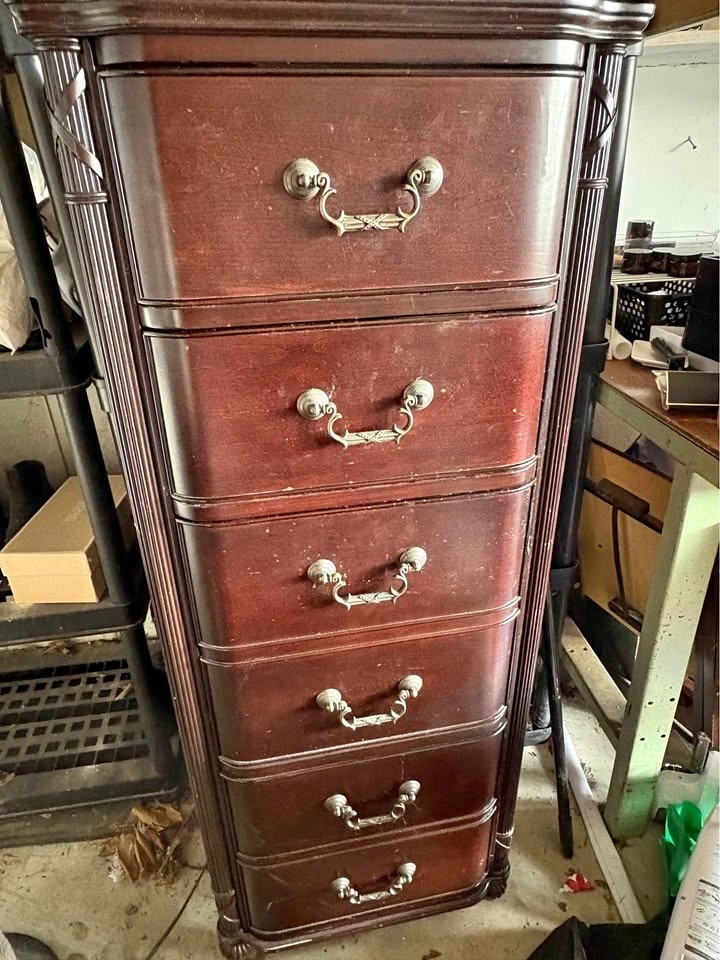 Buy & SellVintage Cherry slim and Tall DresserVintage Cherry slim and Tall Dresser$90All the drawers and hardware are beautiful.🥕WHERE TO MEETWest mountainView MapSELLERJenniferJerome170 reviews1 chats·4 favorites·69 viewsSEND CHAT TO SELLERHi Jennifer! I’m interested in your listing.Hi Jennifer! I’m interested in your listing.Get the Karrot app to chatSign In to chat