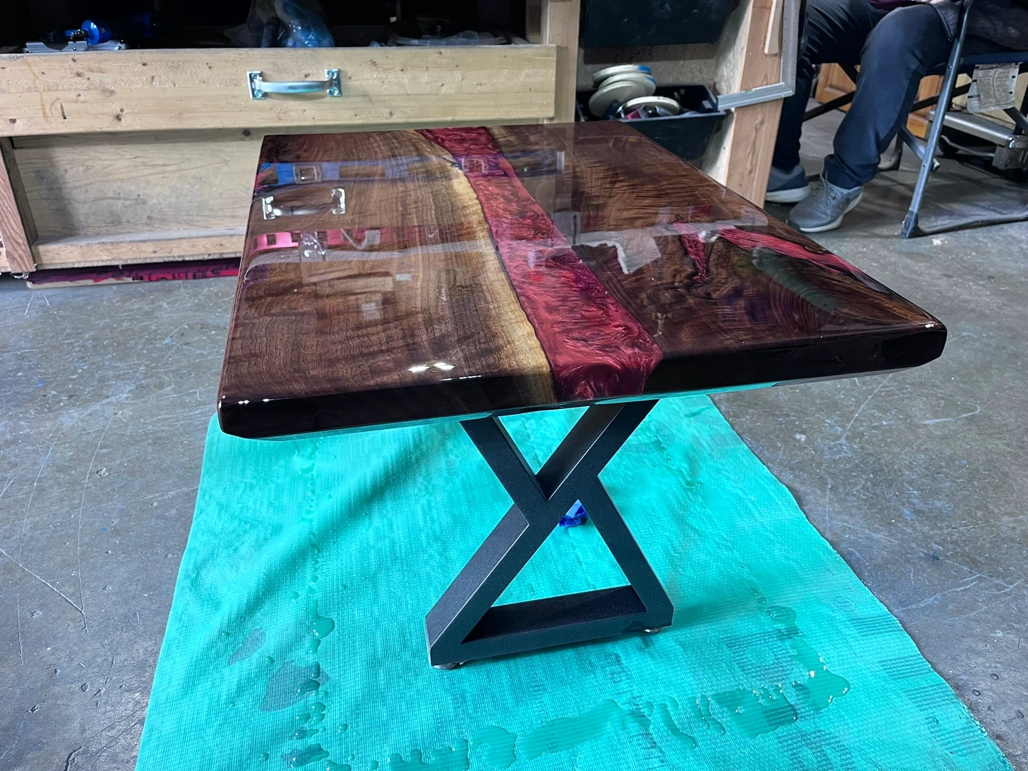 Live Edge Wood and Red Resin Coffee Table