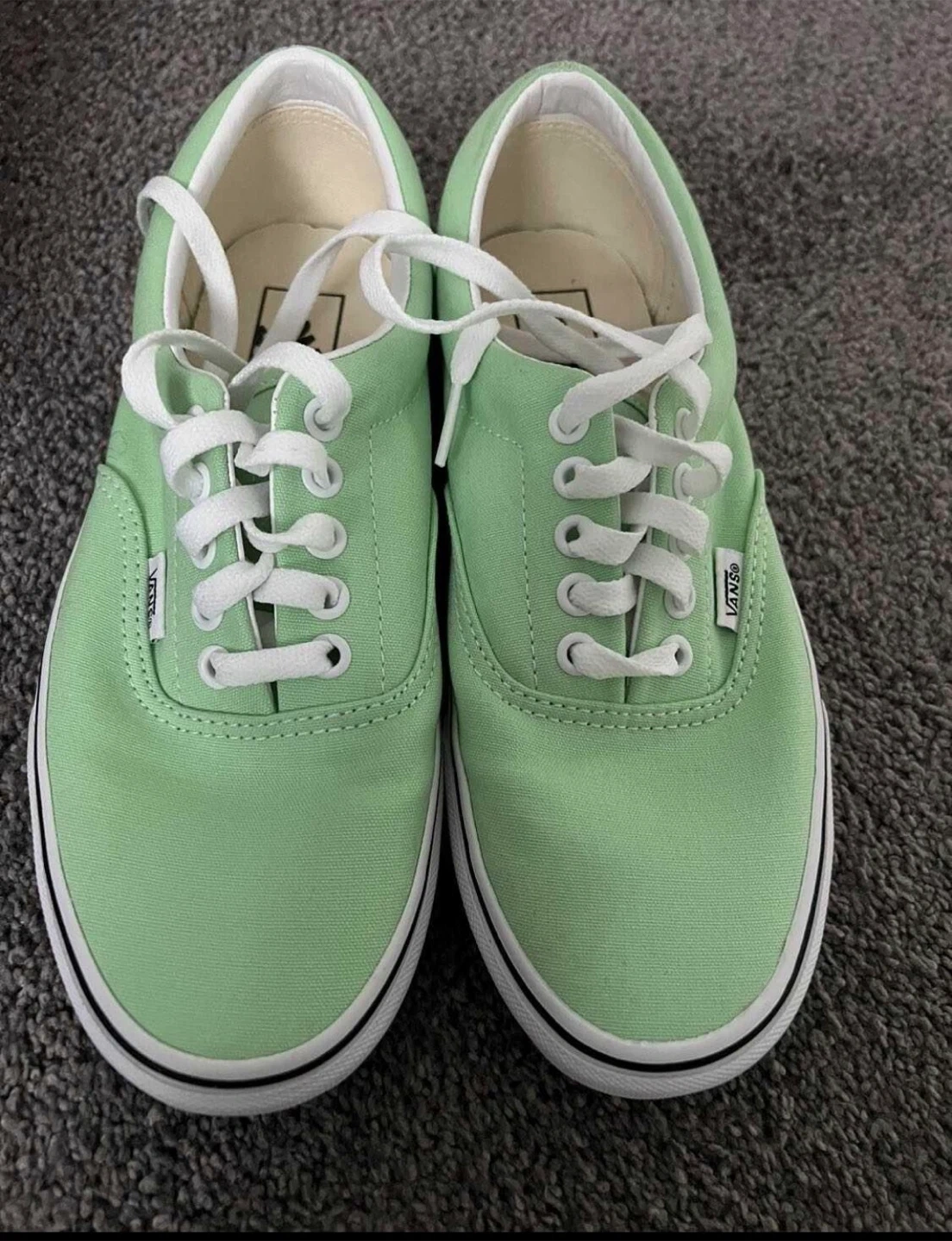 Selling a pair of Vans Era shoes in a refreshing mint green colour! These classic sneakers are in excellent condition and ready for a new adventure. Perfect for adding a pop of colour to your casual outfits!